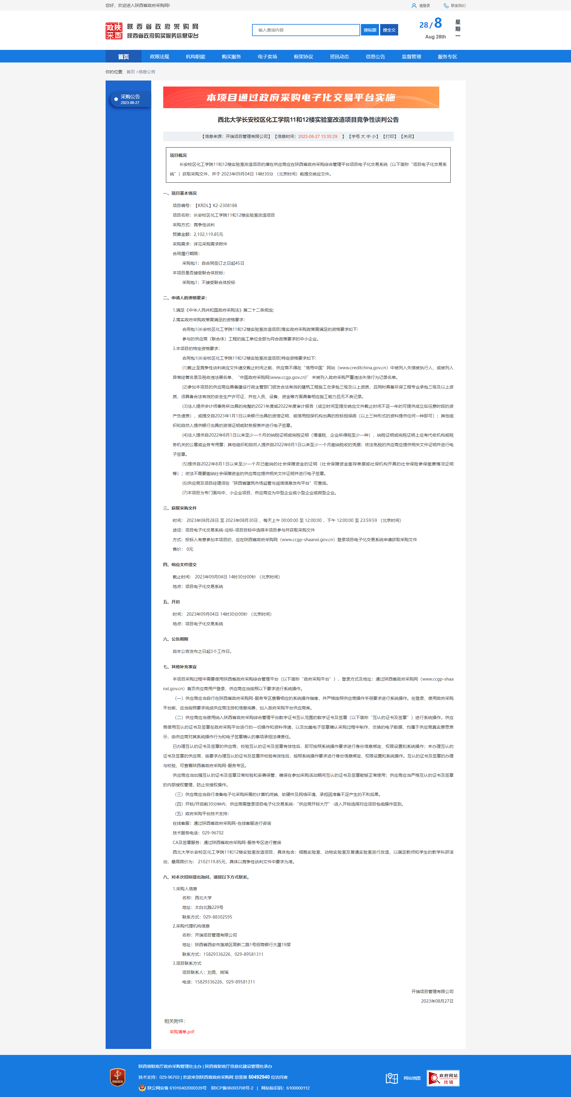 西北大学长安校区化工学院11和12楼实验室改造项目竞争性谈判公告