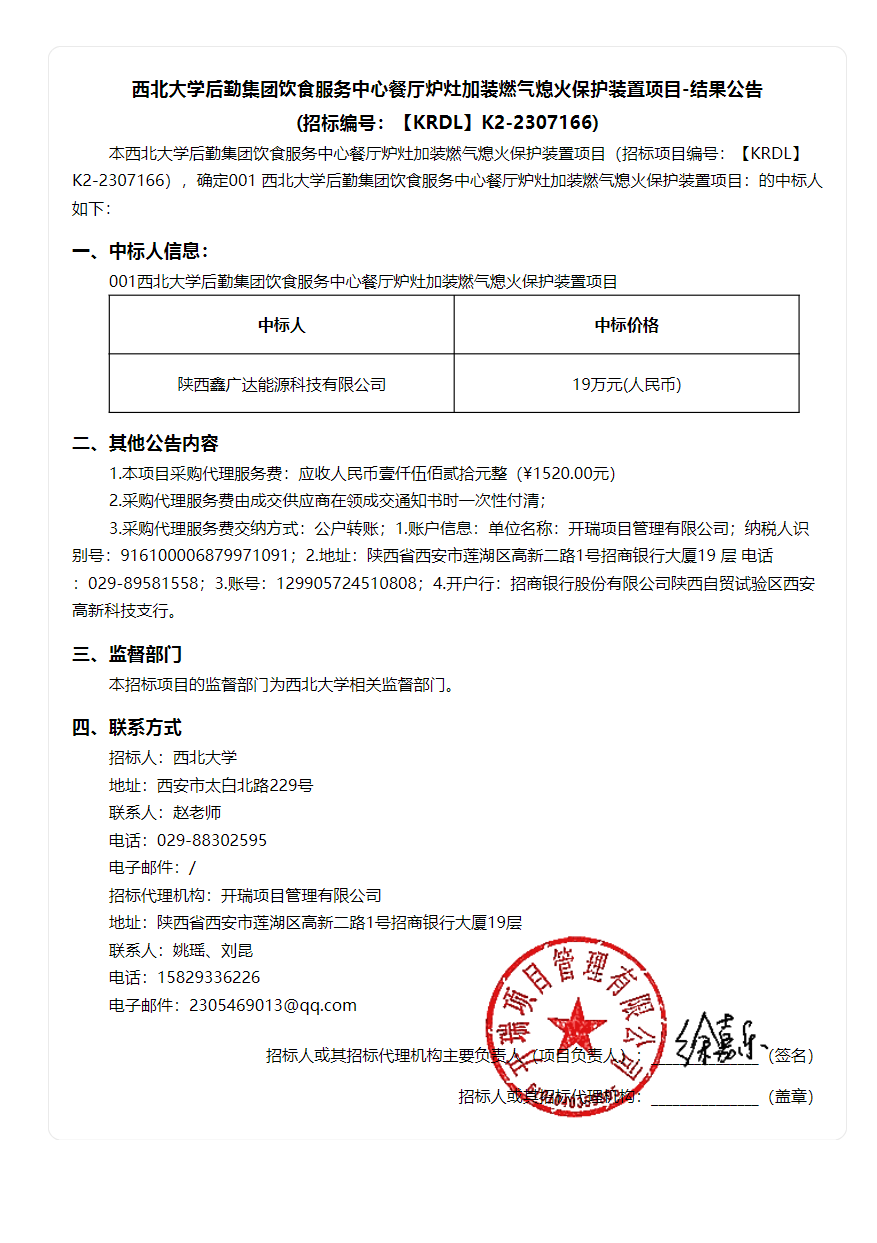 西北大学后勤集团饮食服务中心餐厅炉灶加装燃气熄火保护装置项目-结果公告