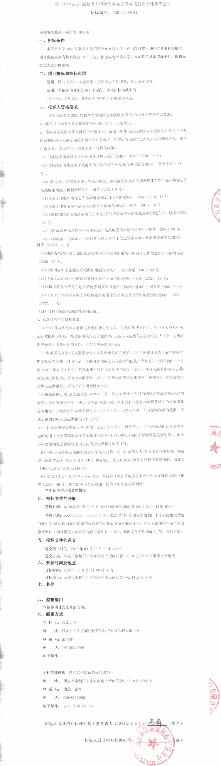 西北大学2024届秋季大型招聘会布展服务项目