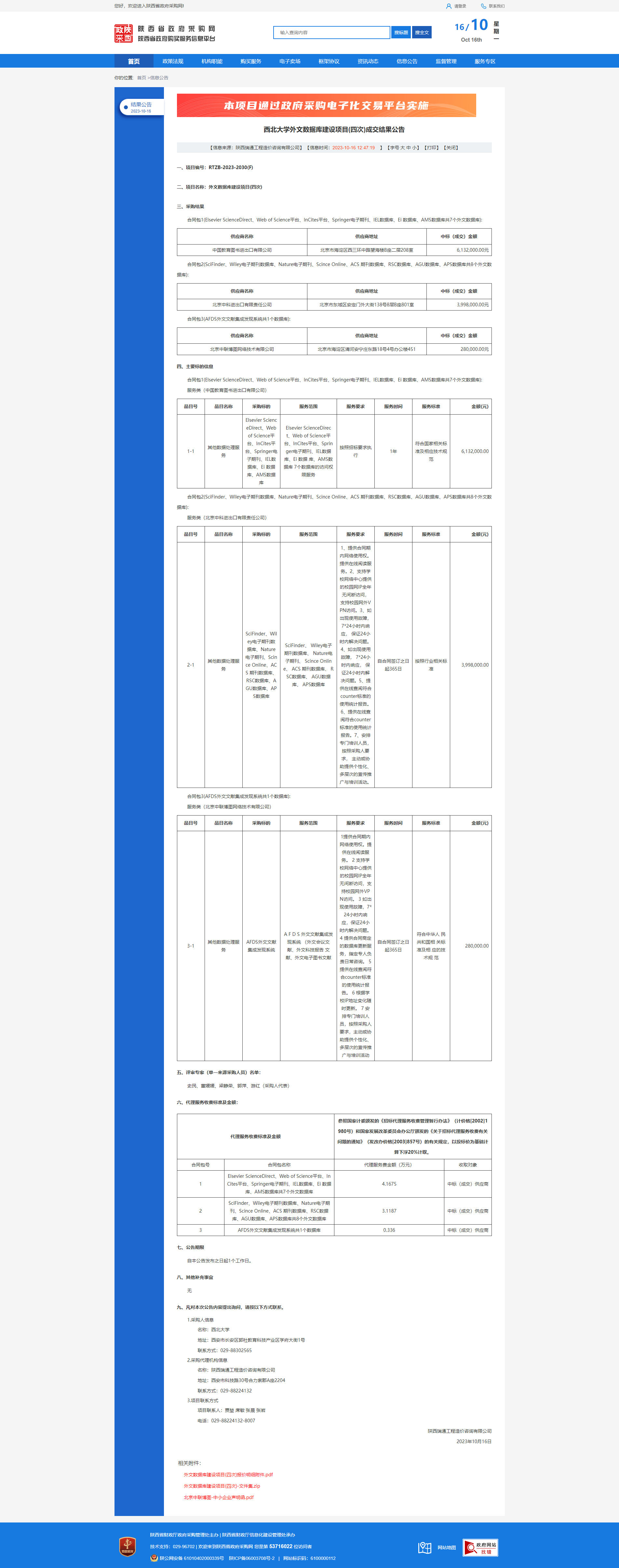 西北大学外文数据库建设项目(四次)成交结果公告