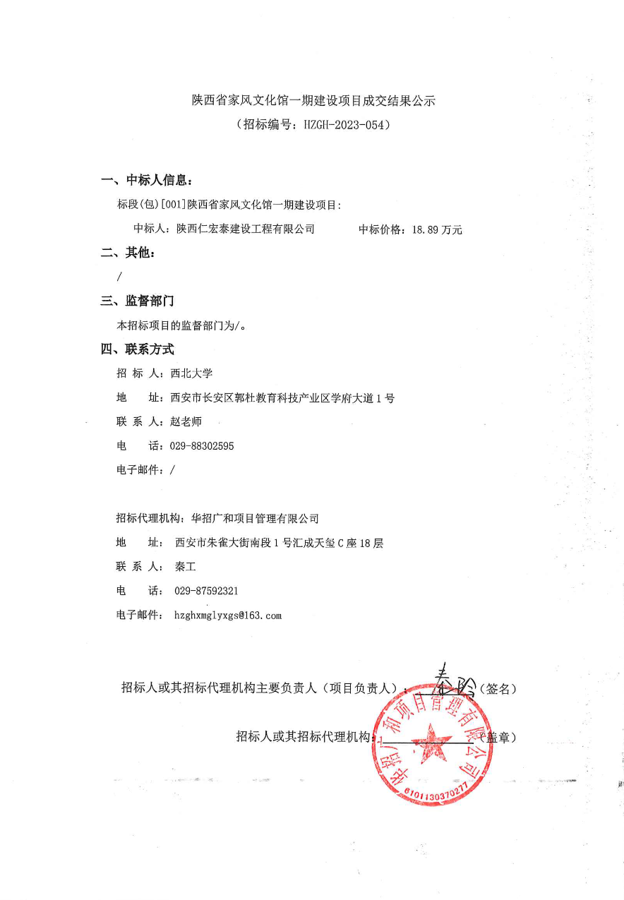 陕西省家风文化馆一期建设项目成交结果公示
