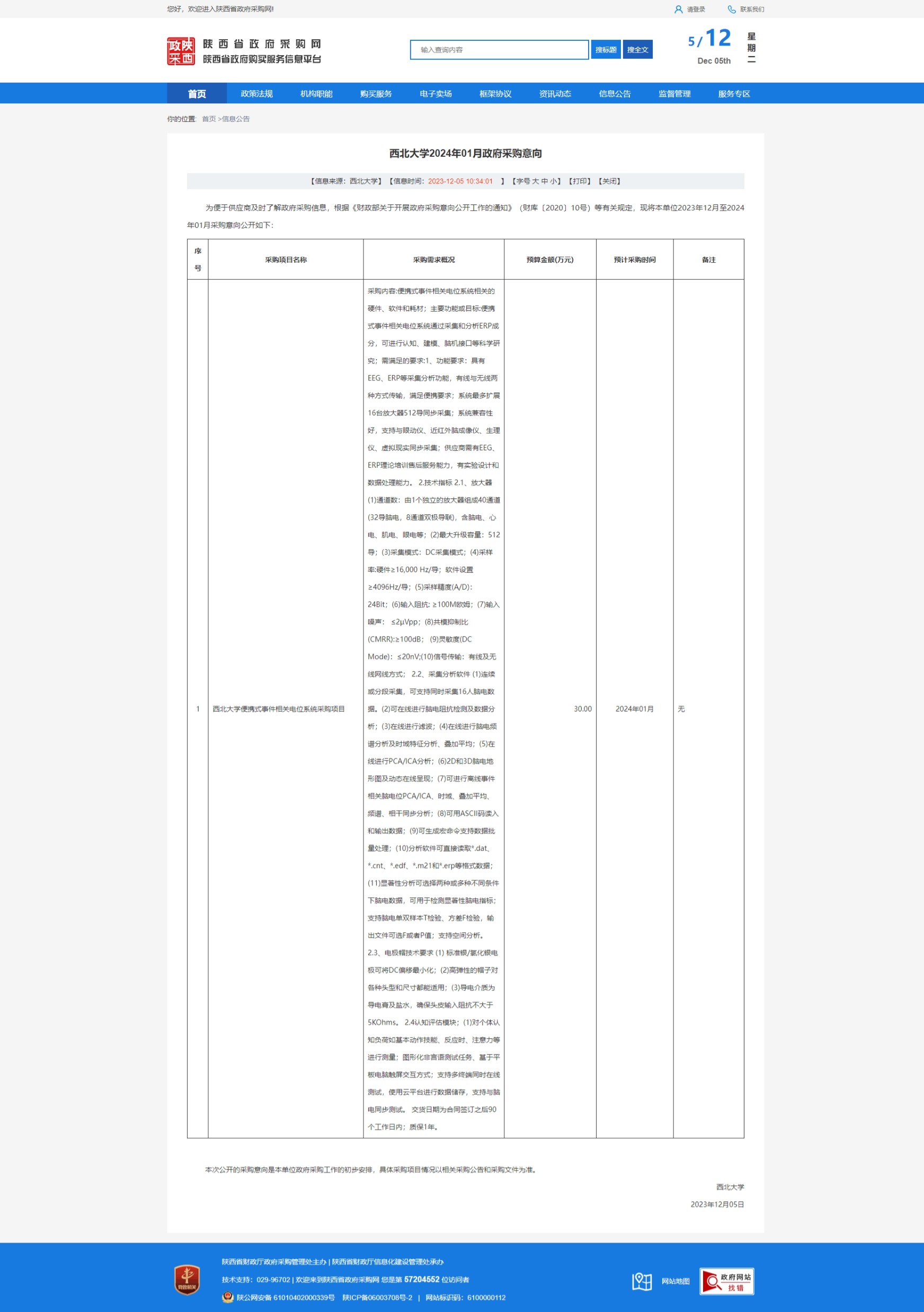 西北大学2024年01月政府采购意向 作者: 编辑: 时间:2023-12-05 原公告链接:http://www.ccgp-shaanxi.gov.cn/freecms/site/shaanxi/ggxx/info/2023/8a69c5ba8c27e66f018c37abf04f6cec.html?noticeType=59¬iceId=202dfbc2-9318-11ee-9a8e-08c0eb20c666