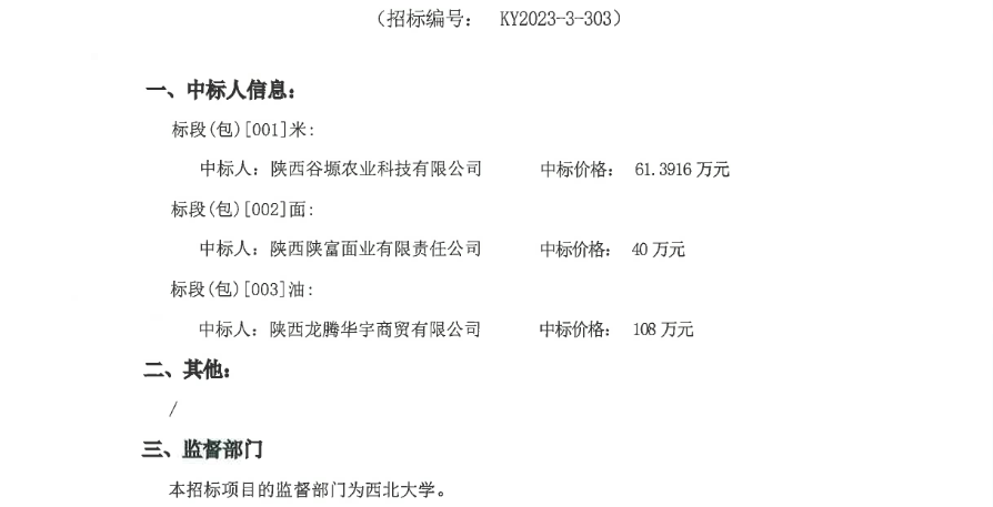 西北大学2023年教职工年底福利采购项目成交公告 作者: 编辑:采购与招标办公室 时间:2023-12-26 原公告链接:http://bulletin.sntba.com/resultBulletin/2023-12-26/950969.html