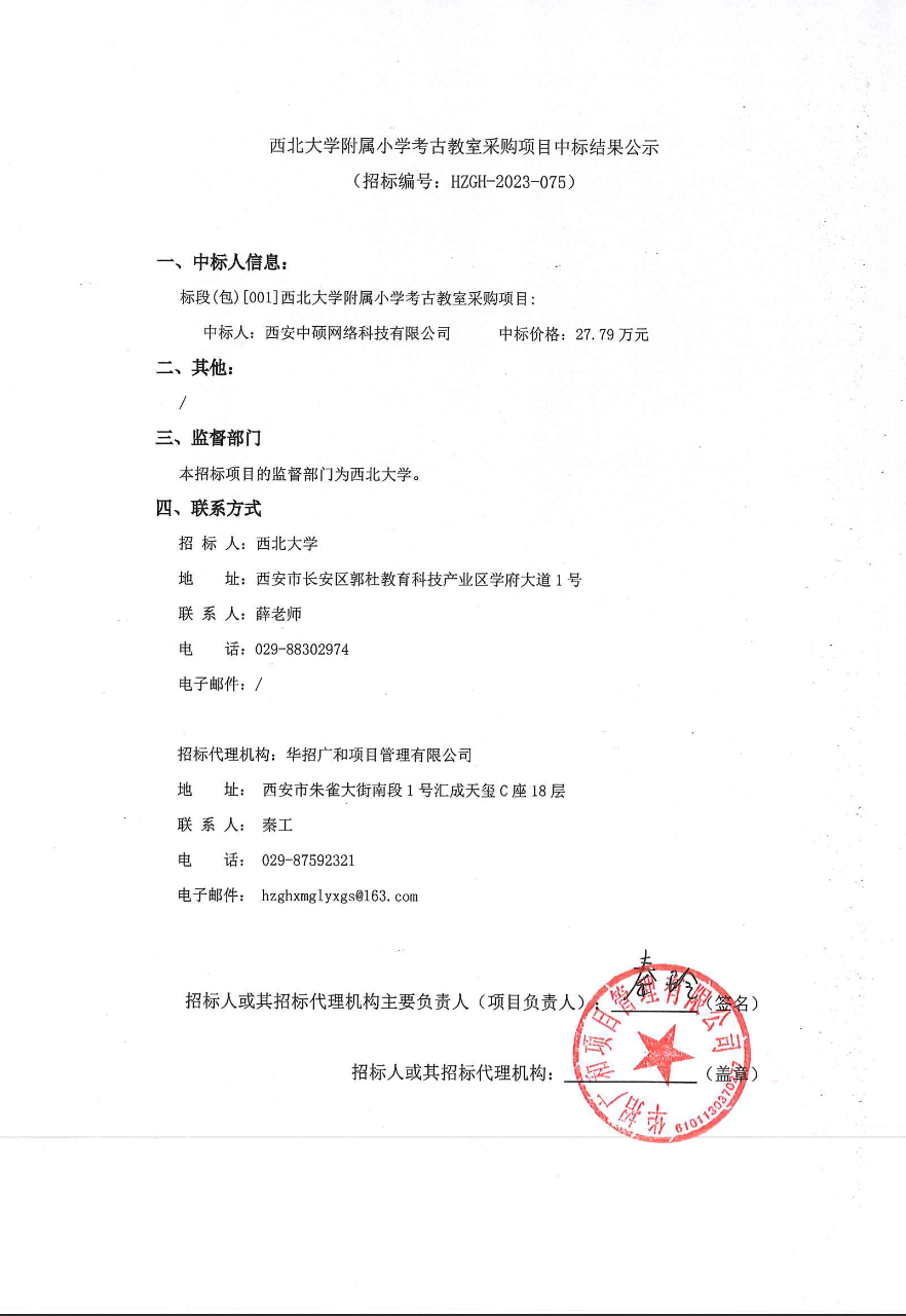 西北大学化工学院报告厅、会议室装修工程项目中标(成交)结果公告