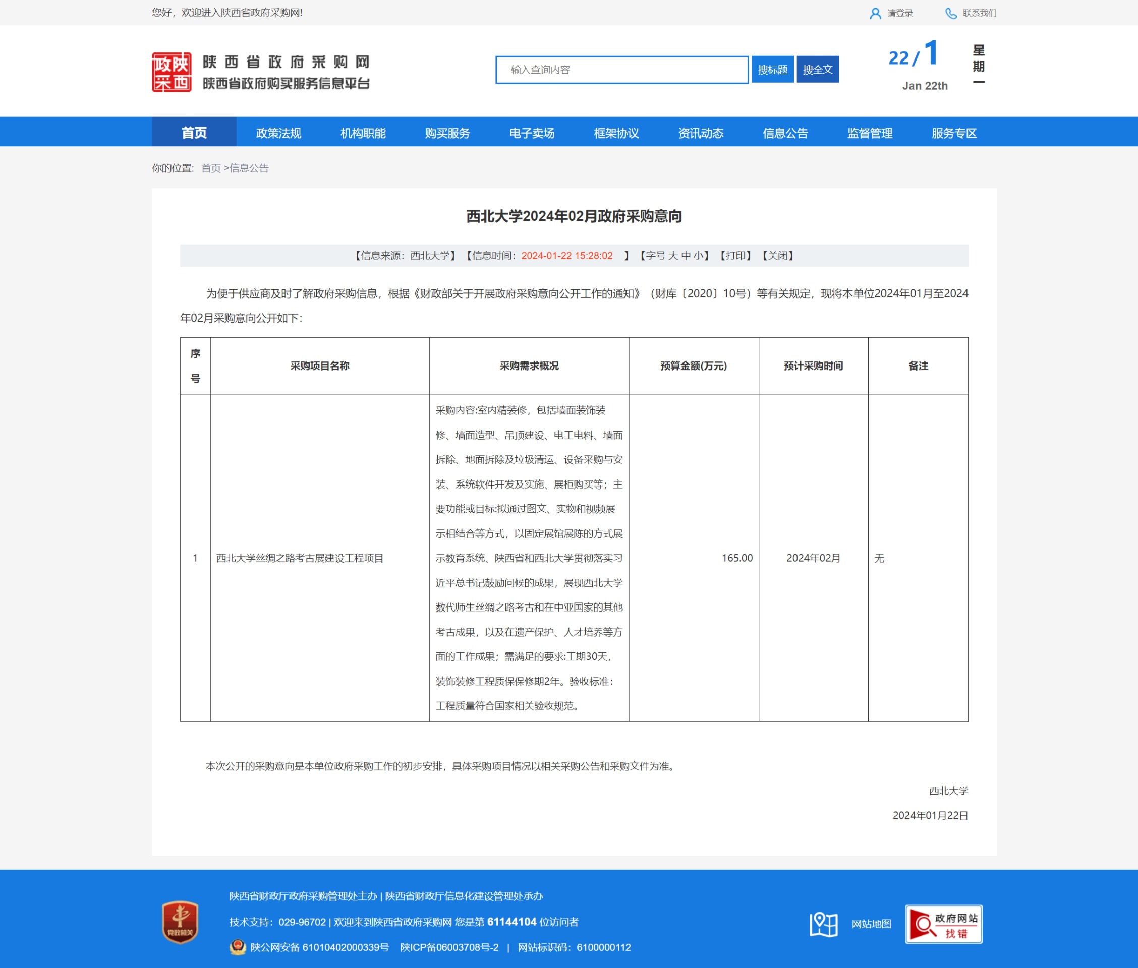 西北大学2024年02月政府采购意向