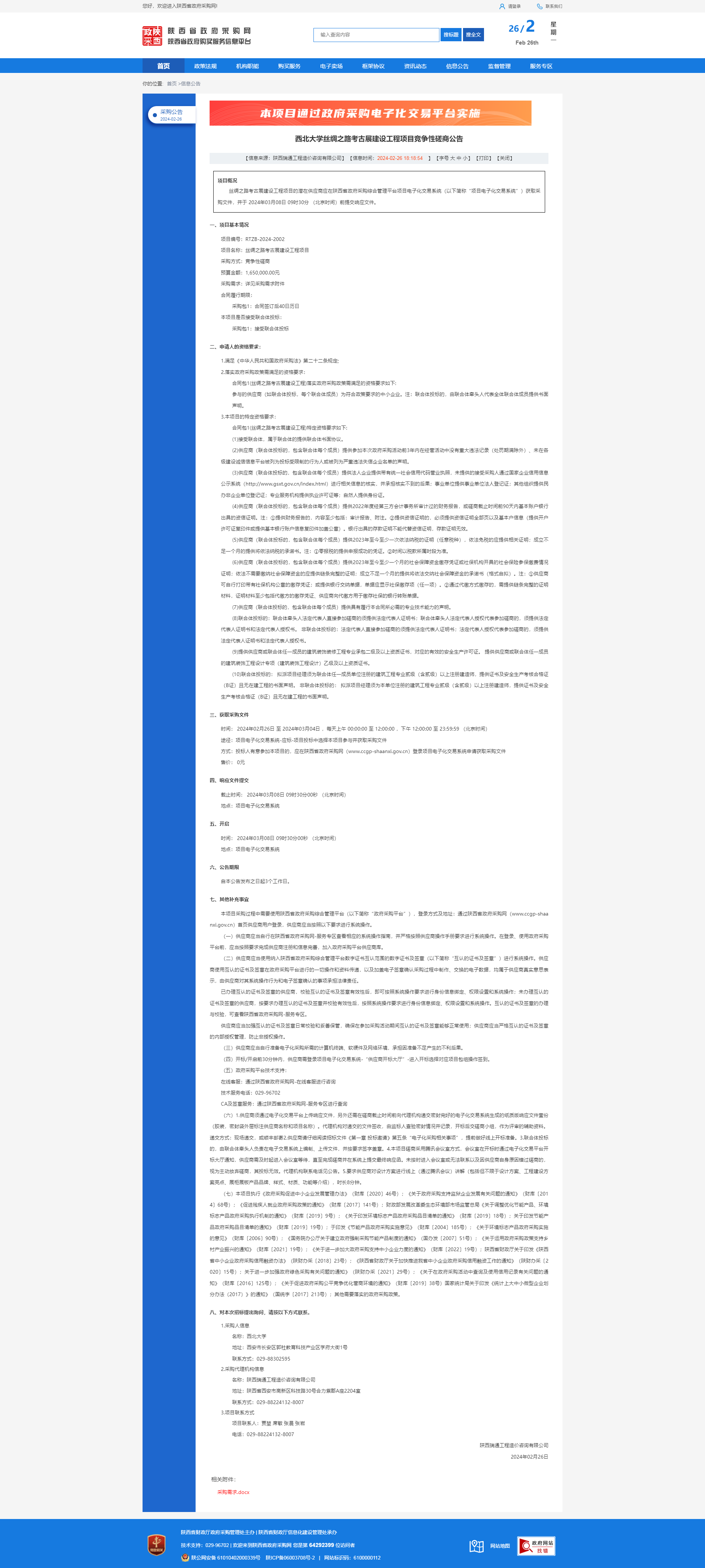 西北大学丝绸之路考古展建设工程项目竞争性磋商公告
