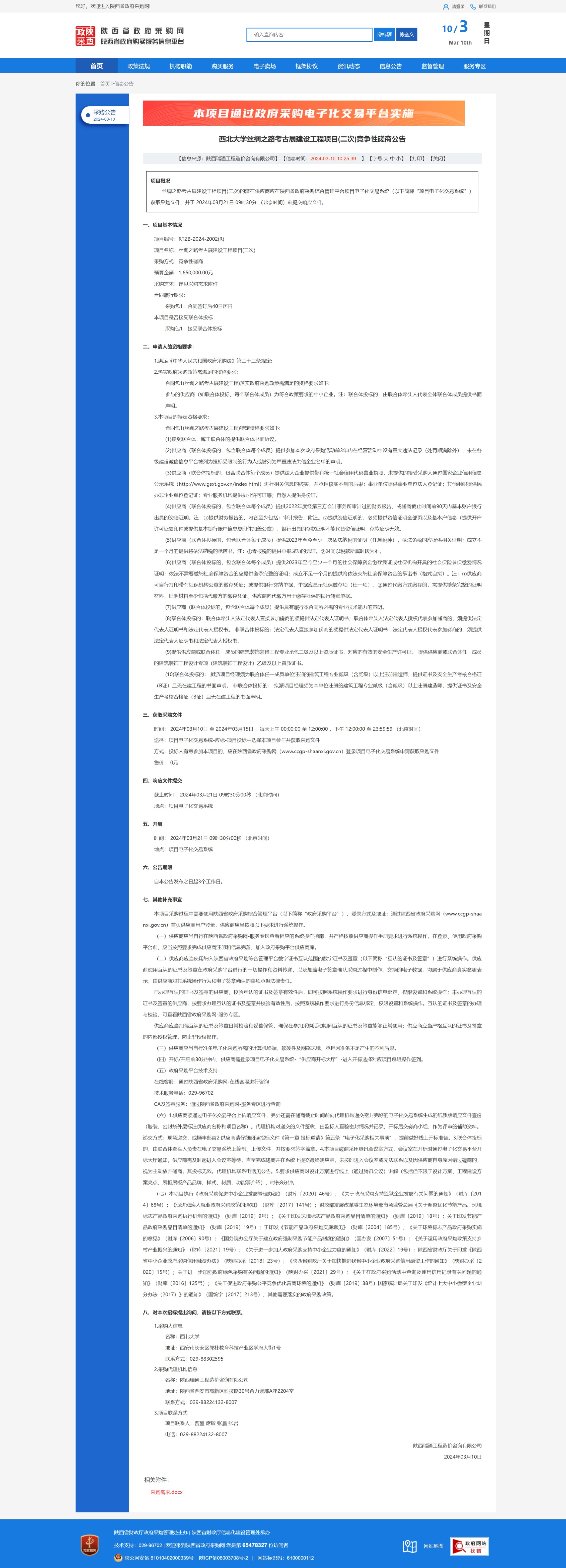 西北大学丝绸之路考古展建设工程项目(二次)竞争性磋商公告