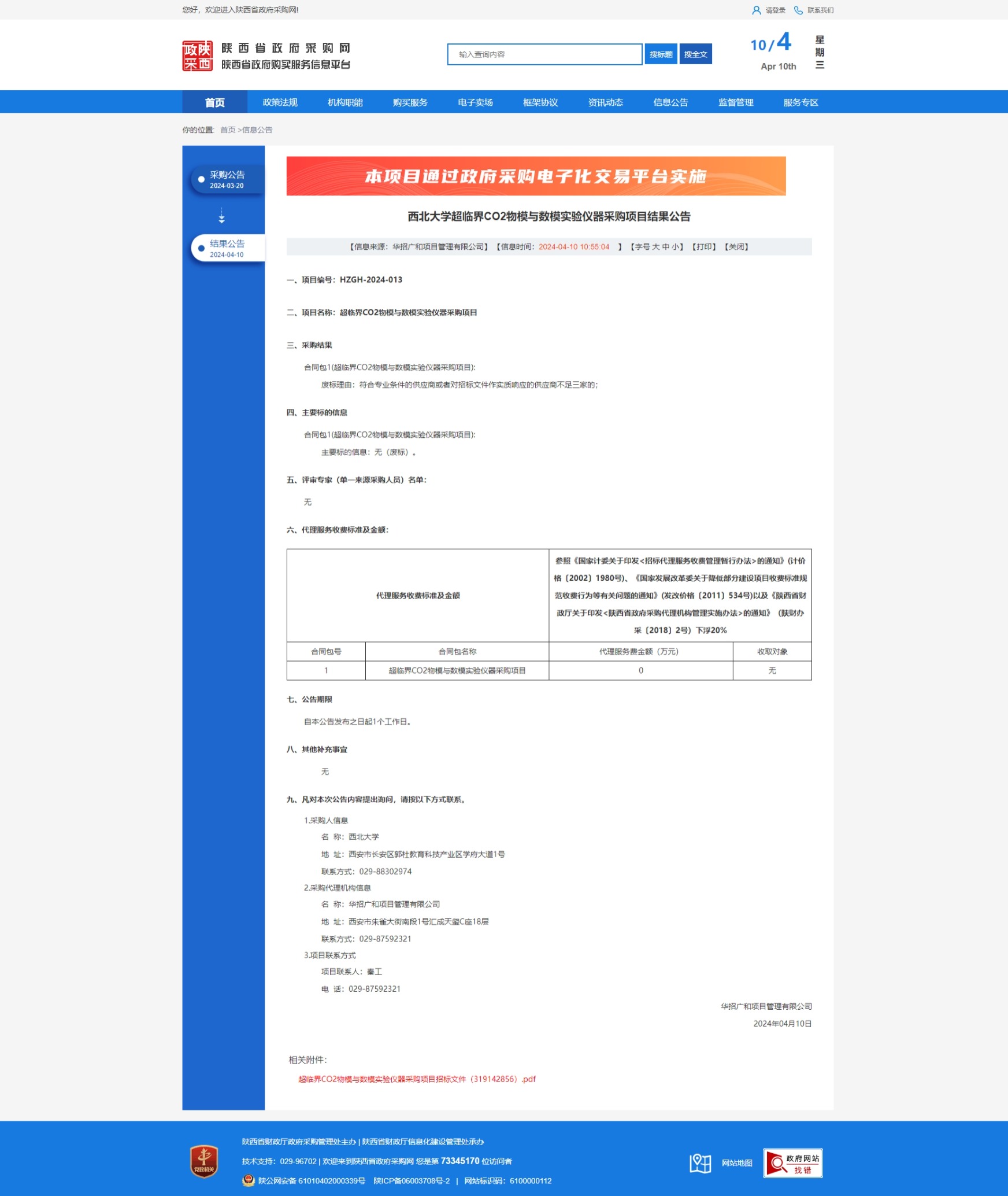 西北大学超临界CO2物模与数模实验仪器采购项目结果公告 作者: 编辑:采购与招标办公室 时间:2024-04-10 原公告链接:https://www.ccgp-shaanxi.gov.cn/freecms/site/shaanxi/ggxx/info/2024/8a69c2f28e4640e0018ec5a1aada287b.html?noticeType=001006¬iceId=e75e67c6-f6e6-11ee-b8b6-08c0eb20c666