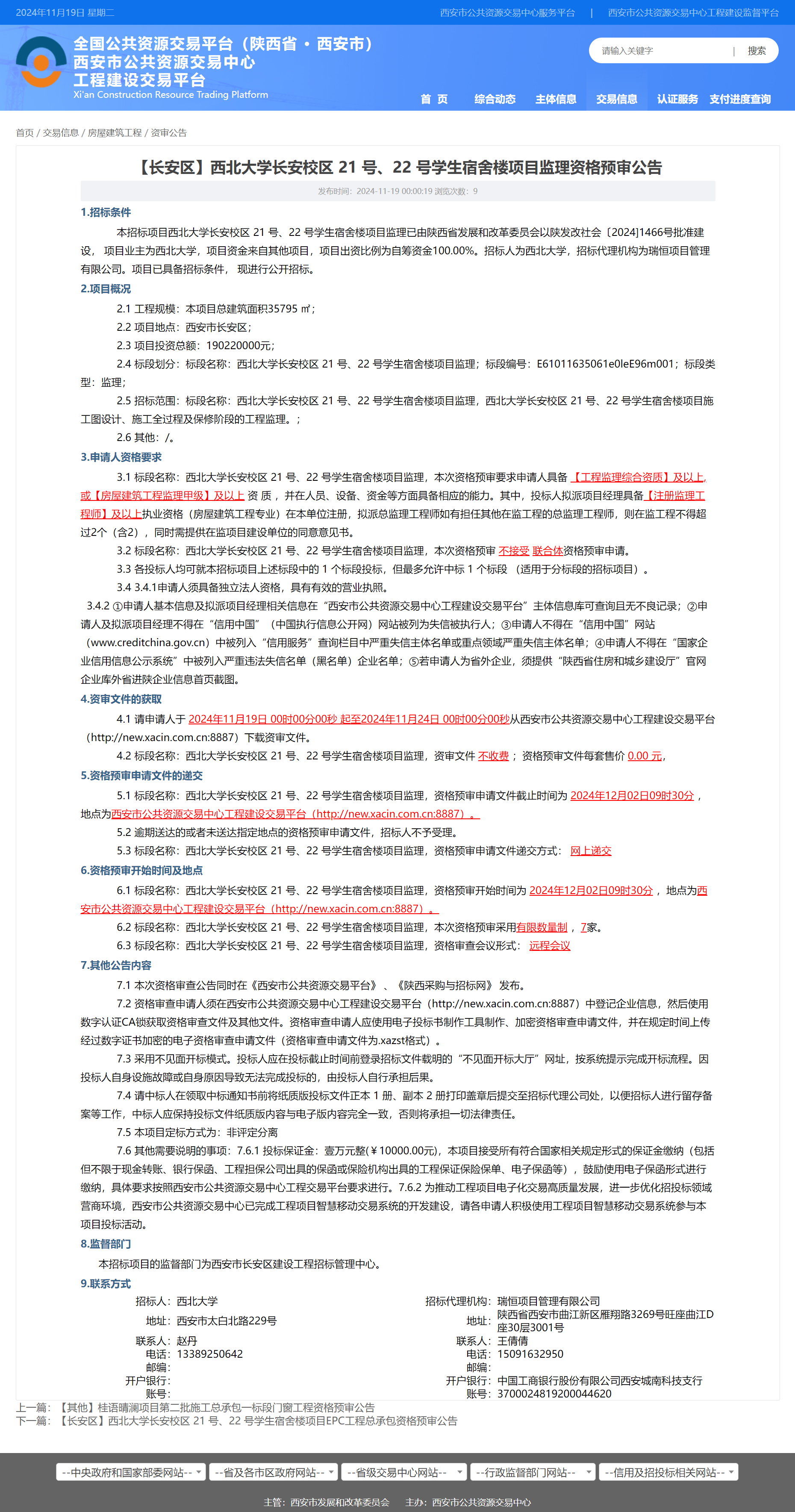 西北大学长安校区 21 号、22 号学生宿舍楼项目监理资格预审公告