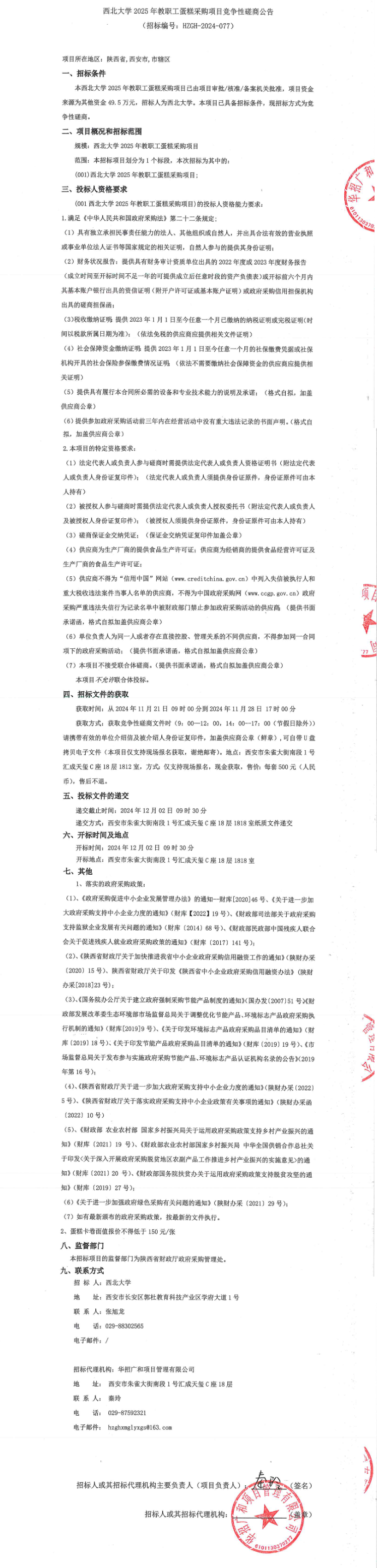 西北大学2025年教职工蛋糕采购项目竞争性磋商公告