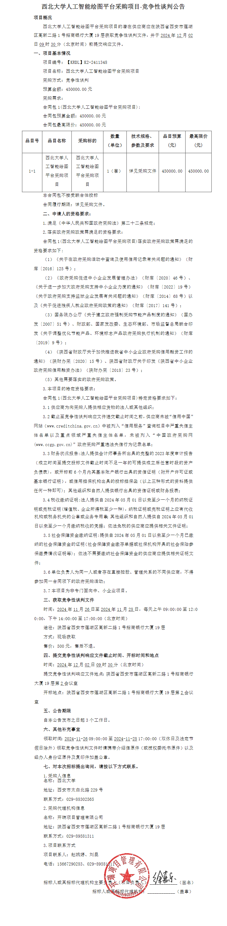 西北大学人工智能绘图平台采购项目竞争性谈判公告