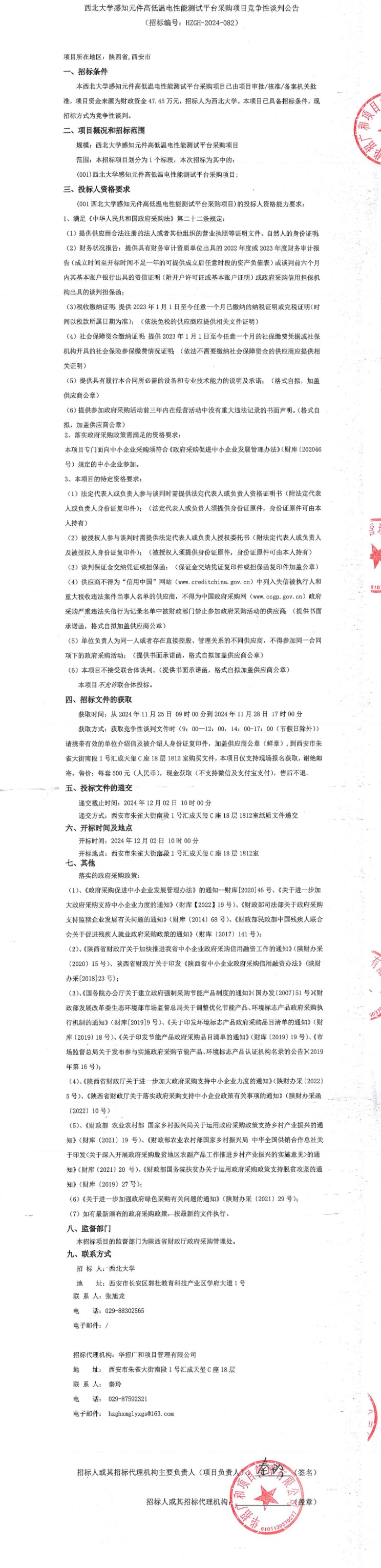 西北大学感知元件高低温电性能测试平台采购项目竞争性谈判公告
