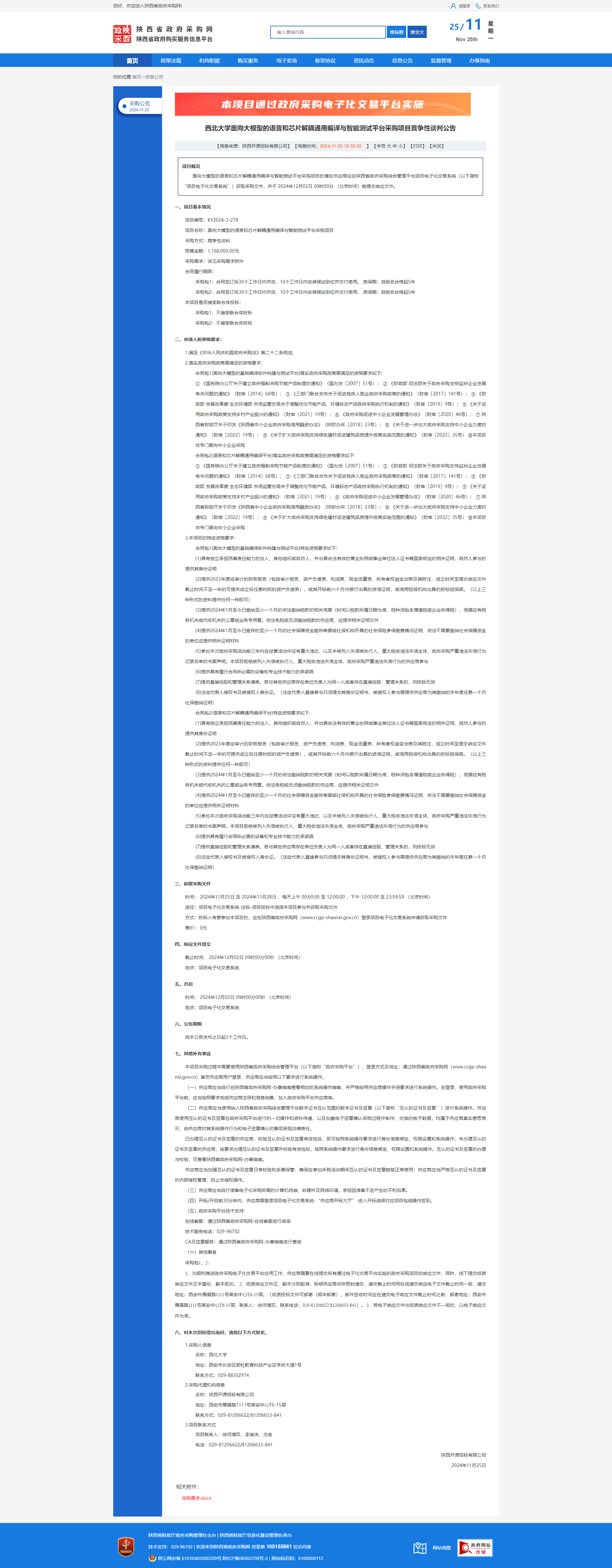 西北大学面向大模型的语言和芯片解耦通用编译与智能测试平台采购项目竞争性谈判公告