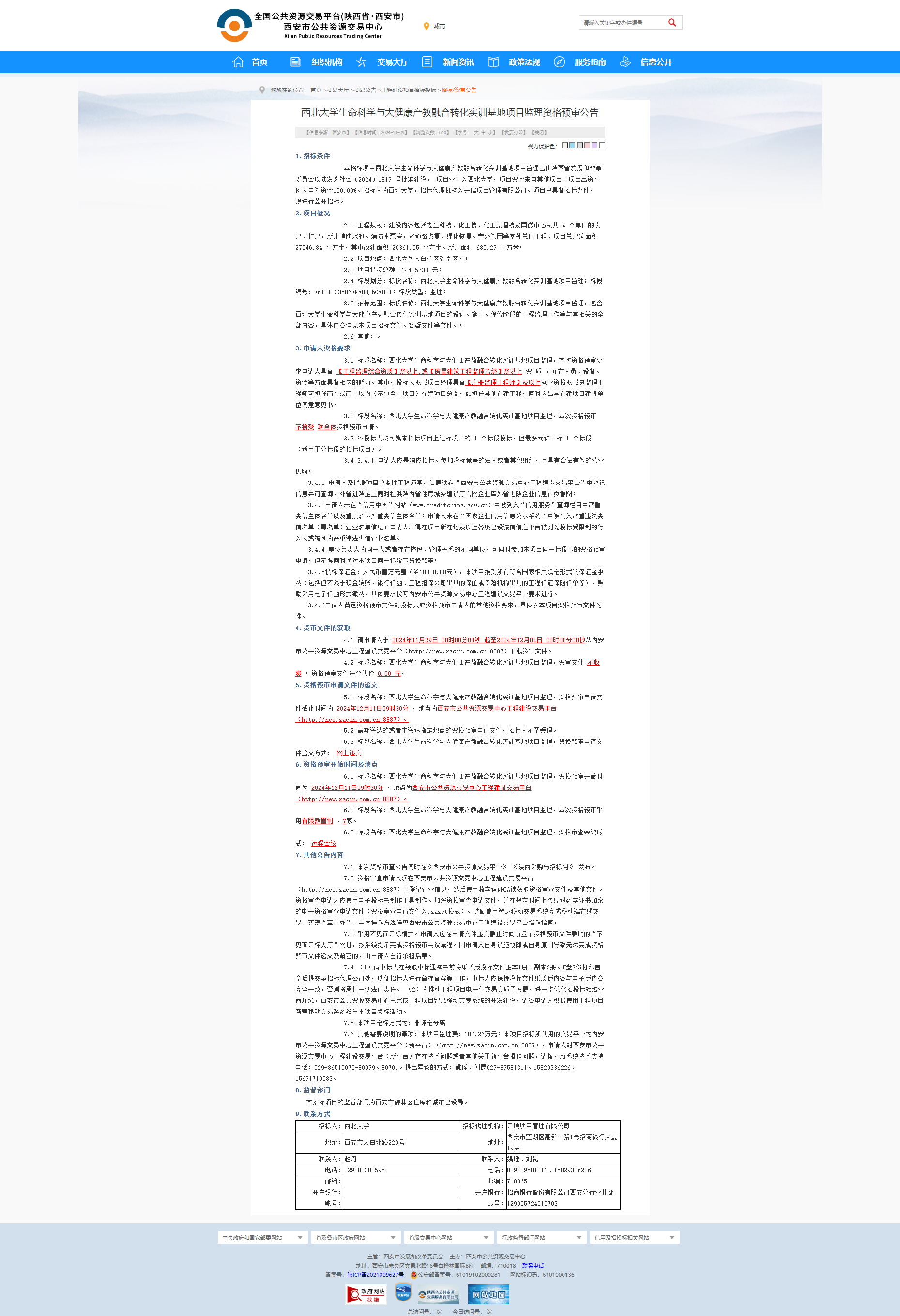 西北大学生命科学与大健康产教融合转化实训基地项目监理资格预审公告