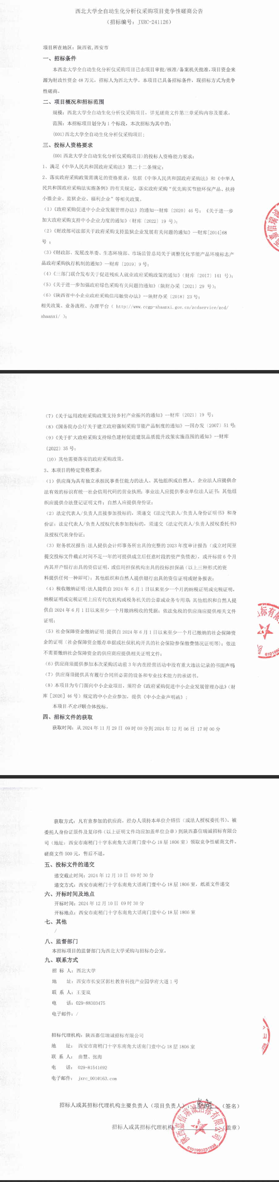 西北大学全自动生化分析仪采购项目竞争性磋商公告 作者:采购与招标办公室 编辑: 时间:2024-11-29 原公告链接:http://bulletin.sntba.com/biddingBulletin/2024-11-29/1990692.html
