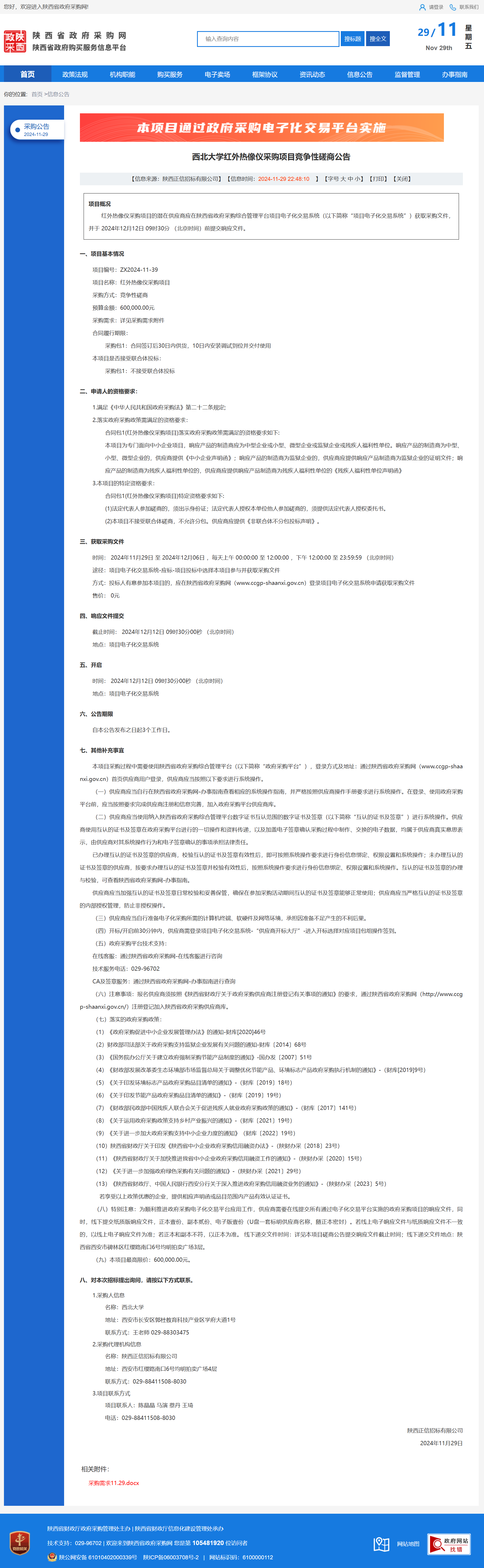 西北大学红外热像仪采购项目竞争性磋商公告 作者:采购与招标办公室 编辑: 时间:2024-11-29 原公告链接:http://www.ccgp-shaanxi.gov.cn/freecms/site/shaanxi/ggxx/info/2024/8a69c25192185737019378563f514743.html?noticeType=001016¬iceId=8c82e43c-ae62-11ef-8063-08c0eb20c666