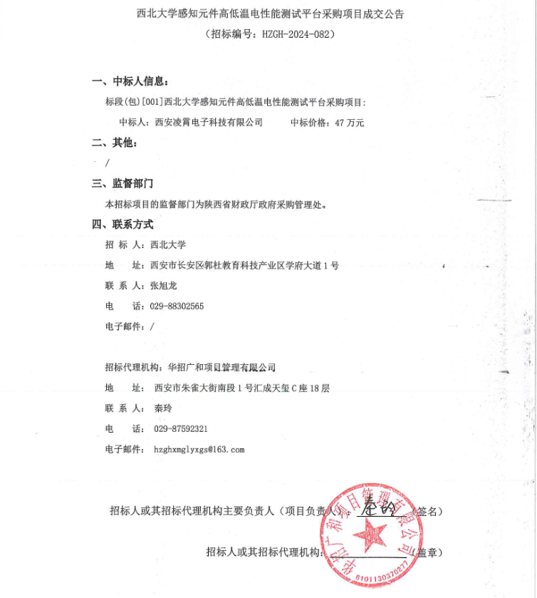 西北大学感知元件高低温电性能测试平台采购项目成交公告