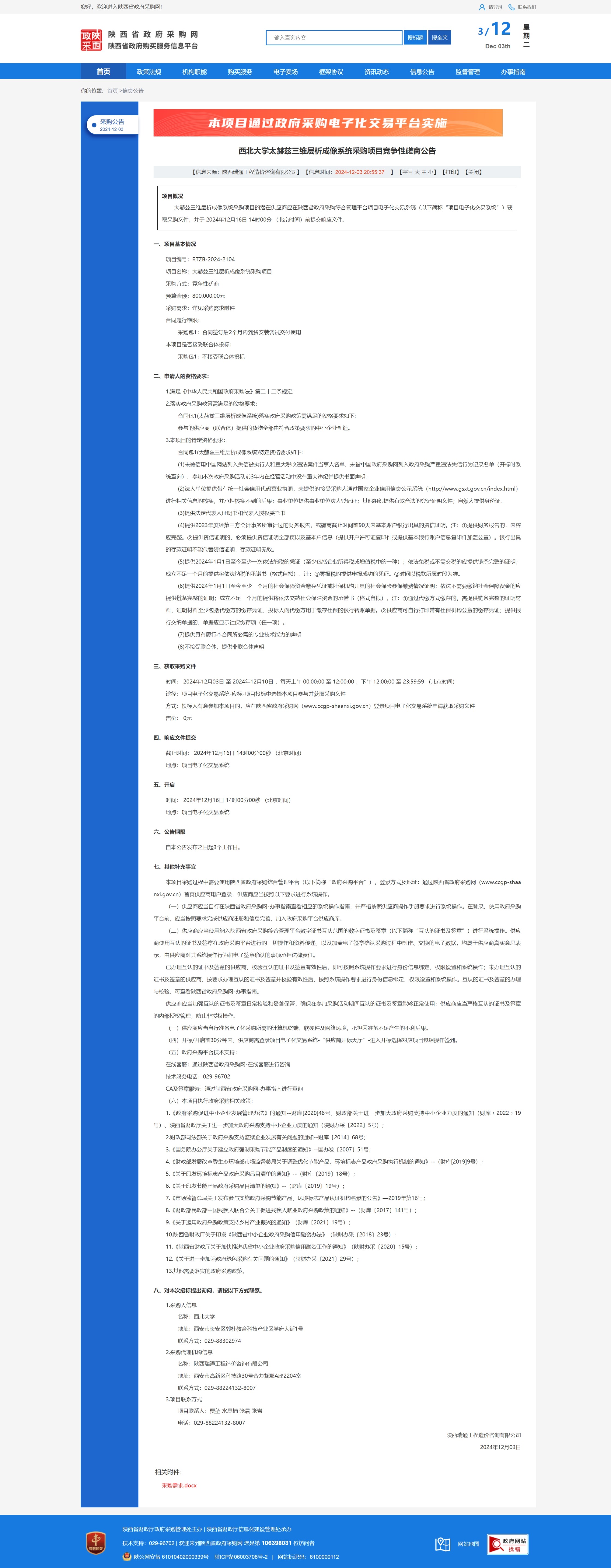 西北大学太赫兹三维层析成像系统采购项目竞争性磋商公告 作者: 编辑:薛利娟 时间:2024-12-03 原公告链接:https://www.ccgp-shaanxi.gov.cn/freecms/site/shaanxi/ggxx/info/2024/8a69c95d921859f001938c91d623402a.html?noticeType=001016¬iceId=7f0f6e3e-b177-11ef-8063-08c0eb20c666