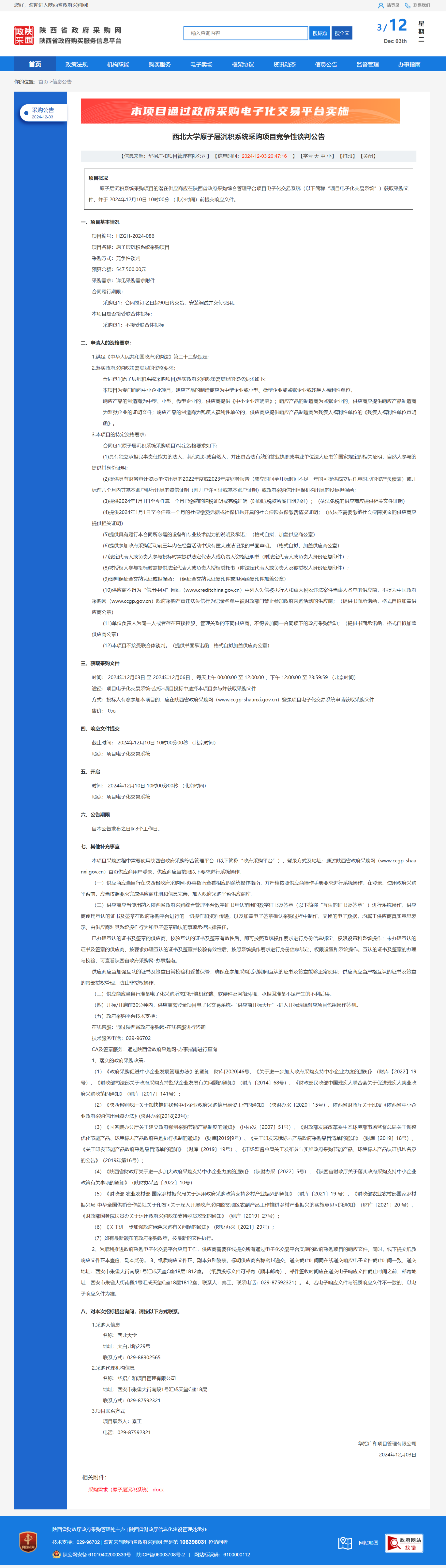 西北大学原子层沉积系统采购项目竞争性谈判公告