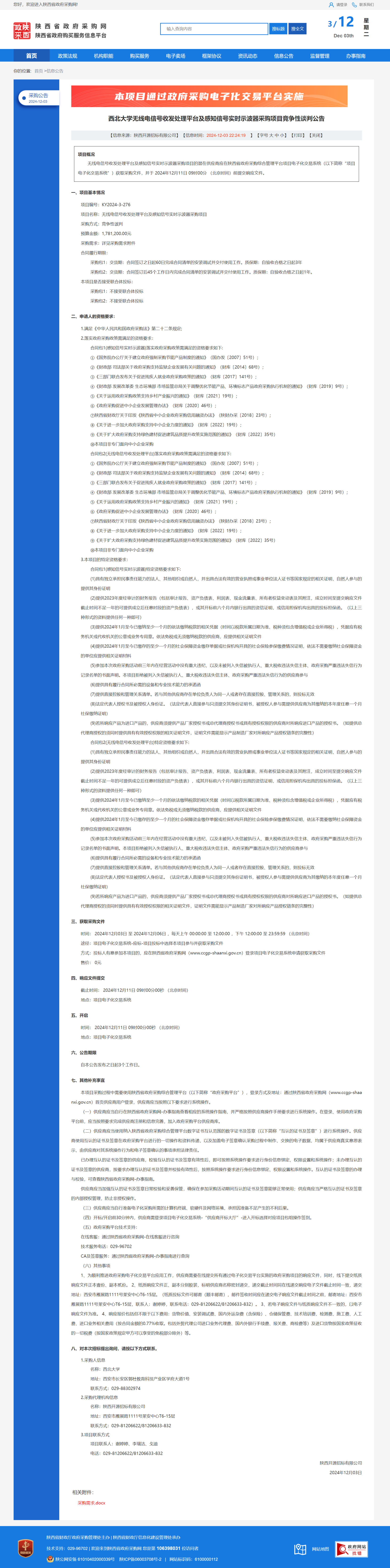 西北大学无线电信号收发处理平台及感知信号实时示波器采购项目竞争性谈判公告