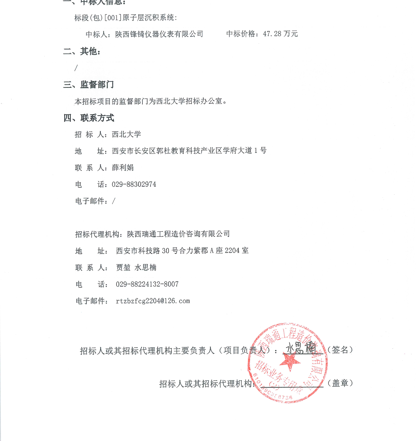 西北大学原子层沉积系统采购项目成交结果公告 作者: 编辑:薛利娟 时间:2024-12-05 原公告链接:http://bulletin.sntba.com/resultBulletin/2024-12-05/1993564.html