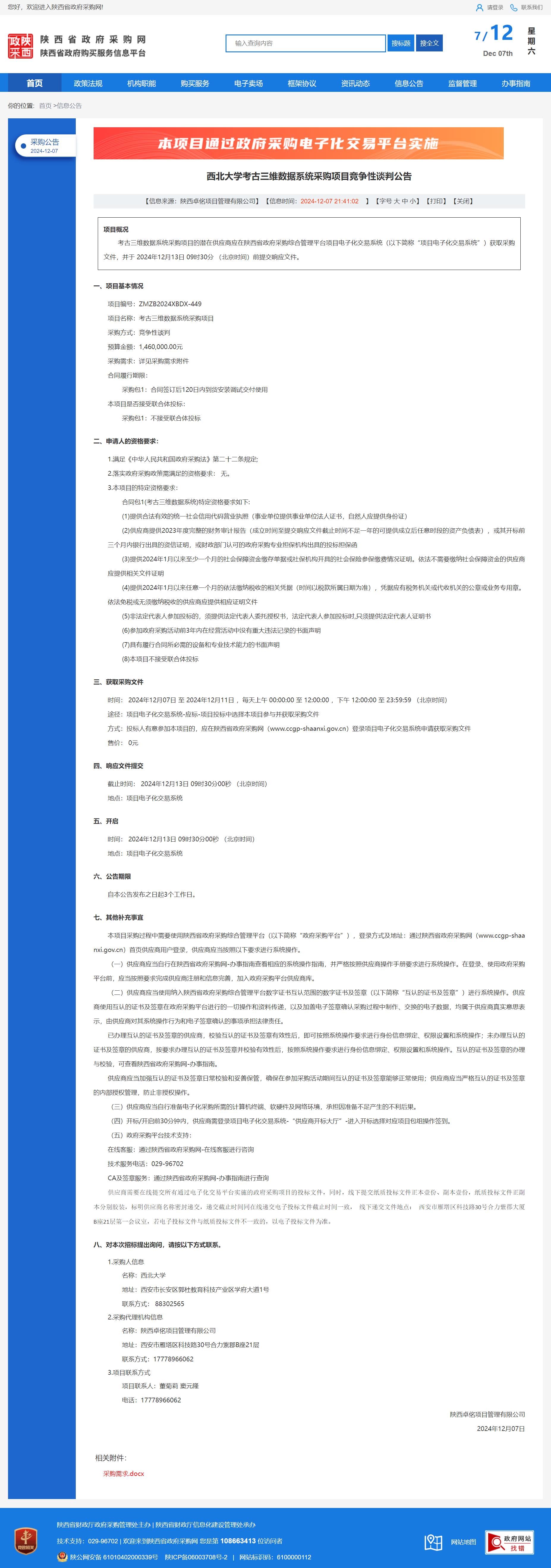 西北大学考古三维数据系统采购项目竞争性谈判公告