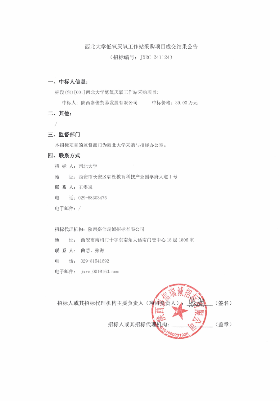 西北大学低氧厌氧工作站采购项目成交结果公告 作者:采购与招标办公室 编辑: 时间:2024-12-10 原公告链接:http://bulletin.sntba.com/resultBulletin/2024-12-10/1995694.html