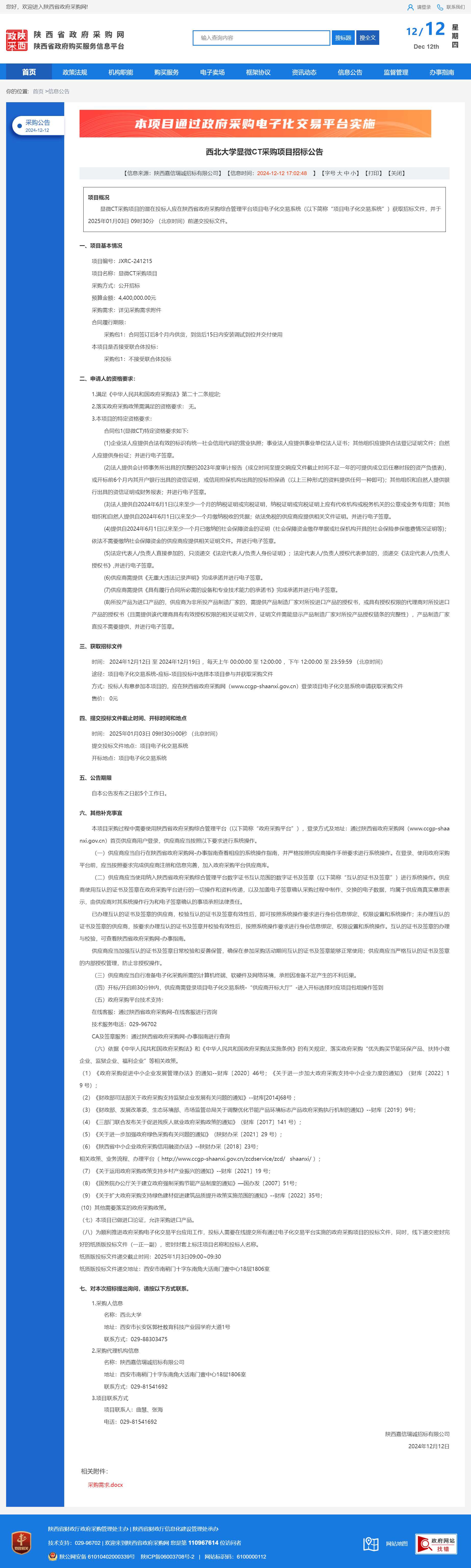 西北大学显微CT采购项目招标公告 作者:采购与招标办公室 编辑: 时间:2024-12-12 原公告链接:https://www.ccgp-shaanxi.gov.cn/freecms/site/shaanxi/ggxx/info/2024/8a69c5a59218576d0193ba1292507a9d.html?noticeType=001011¬iceId=7add7000-b869-11ef-8063-08c0eb20c666