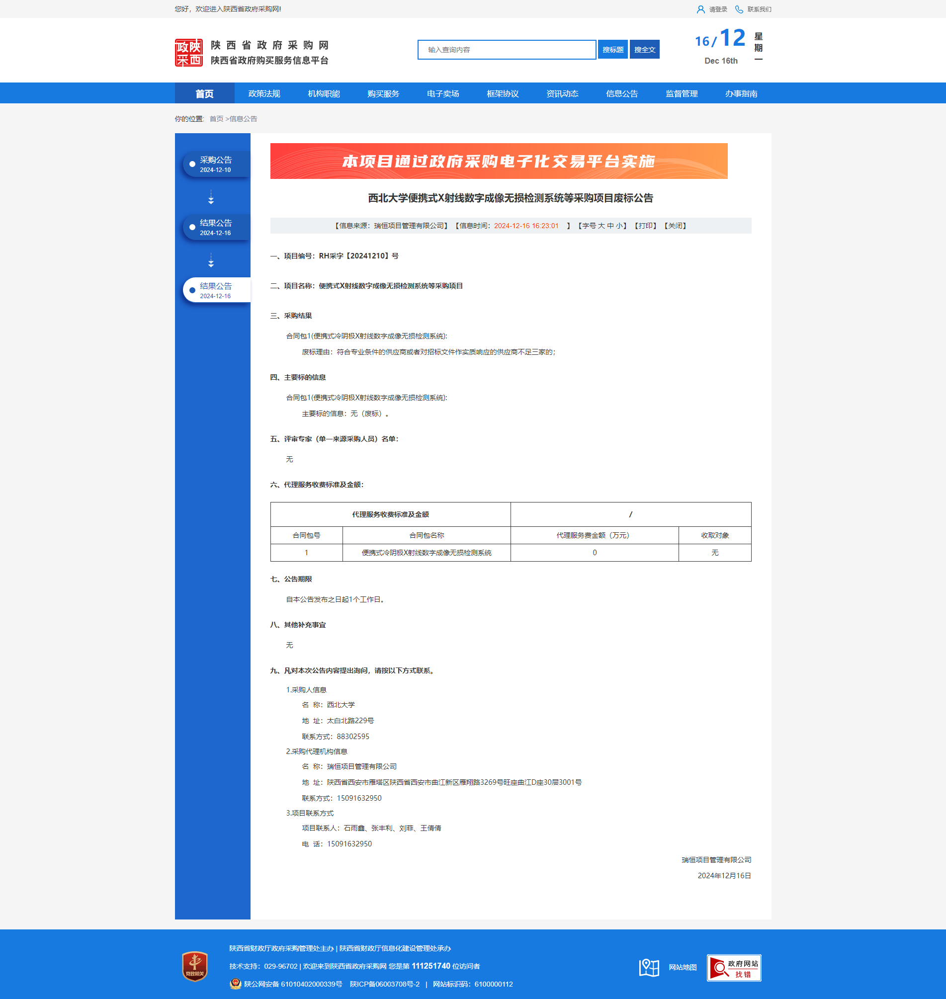 西北大学便携式X射线数字成像无损检测系统等采购项目废标公告