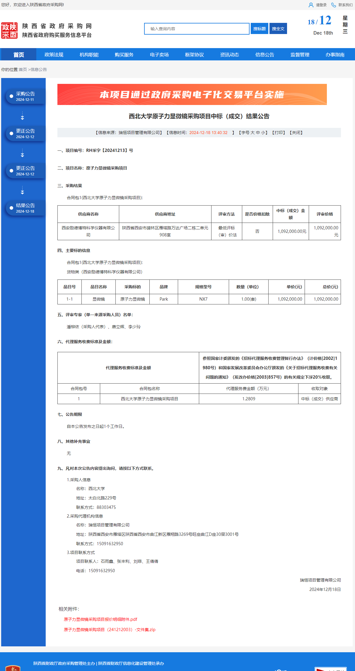 西北大学原子力显微镜采购项目中标(成交)结果公告 作者:采购与招标办公室 编辑: 时间:2024-12-18 原公告链接:https://www.ccgp-shaanxi.gov.cn/freecms/site/shaanxi/ggxx/info/2024/8a69c95d921859f00193d84373ad1532.html