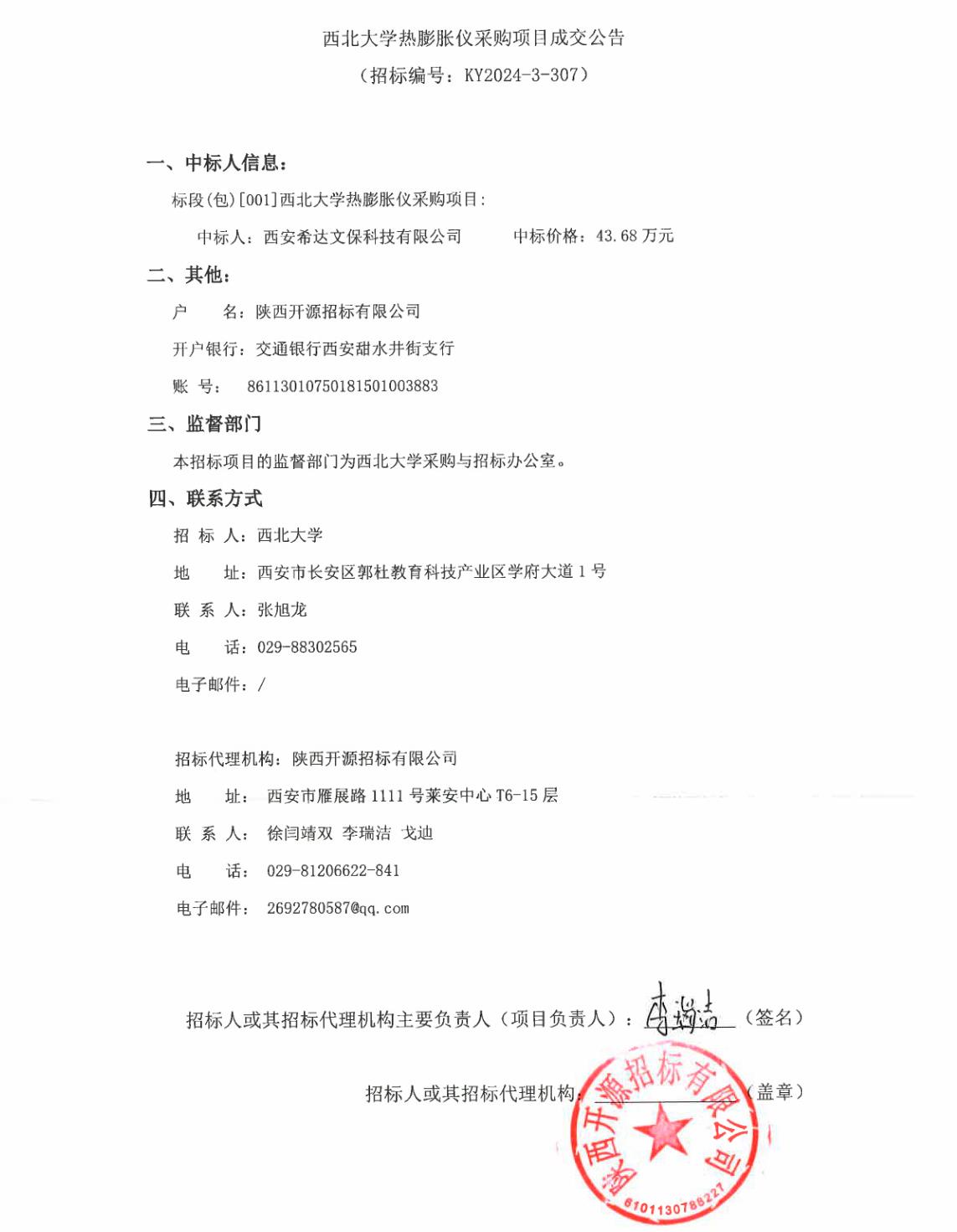 西北大学热膨胀仪采购项目成交公告