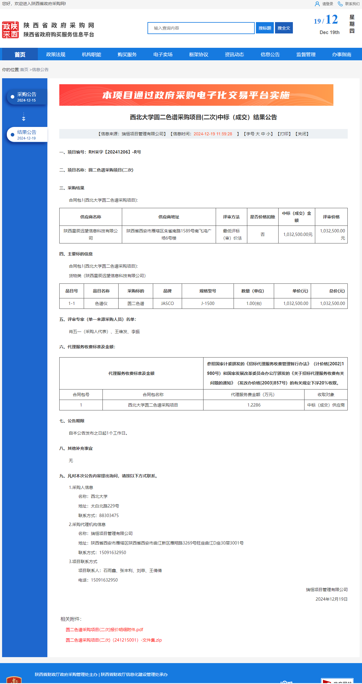 西北大学圆二色谱采购项目(二次)中标(成交)结果公告 作者:采购与招标办公室 编辑: 时间:2024-12-19 原公告链接:https://www.ccgp-shaanxi.gov.cn/freecms/site/shaanxi/ggxx/info/2024/8a69c251921857370193dd0f42b54b4b.html?noticeType=001023¬iceId=471ef2a6-bdbf-11ef-8063-08c0eb20c666