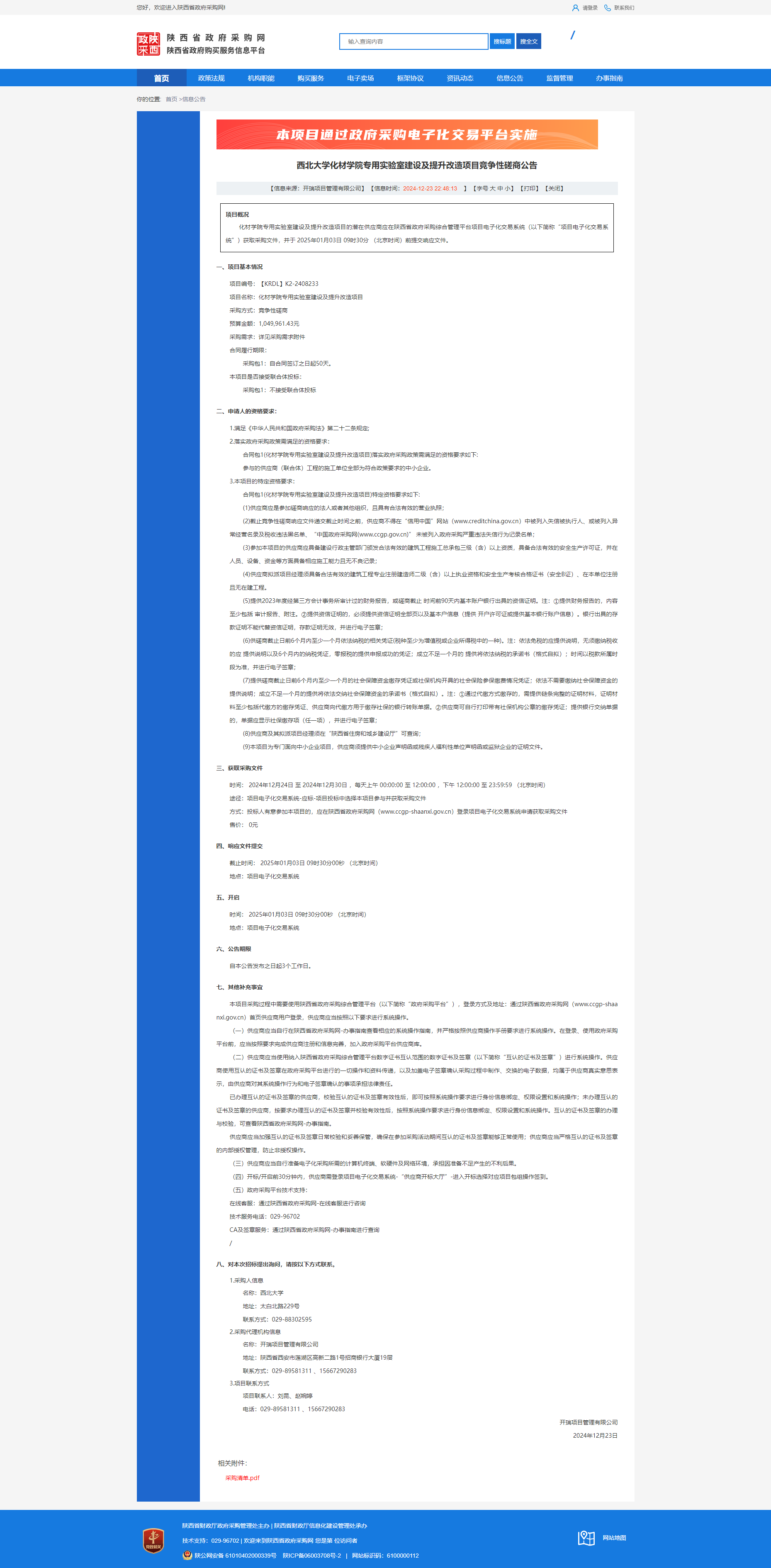 西北大学化材学院专用实验室建设及提升改造项目竞争性磋商公告