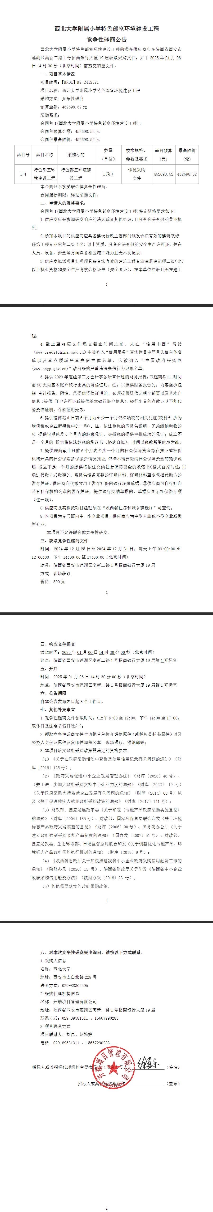 西北大学附属小学特色部室环境建设工程竞争性磋商公告
