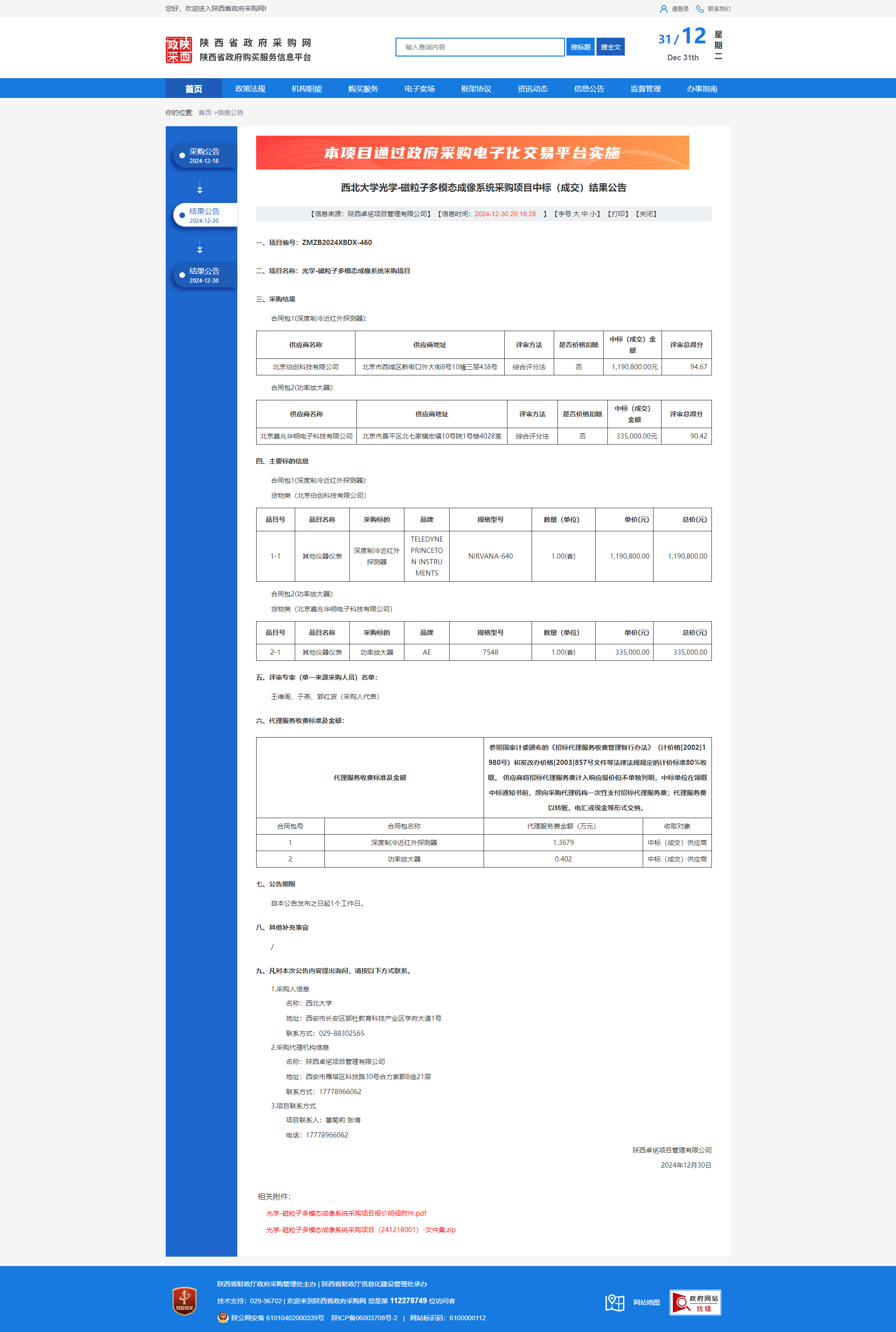 西北大学光学-磁粒子多模态成像系统采购项目中标(成交)结果公告