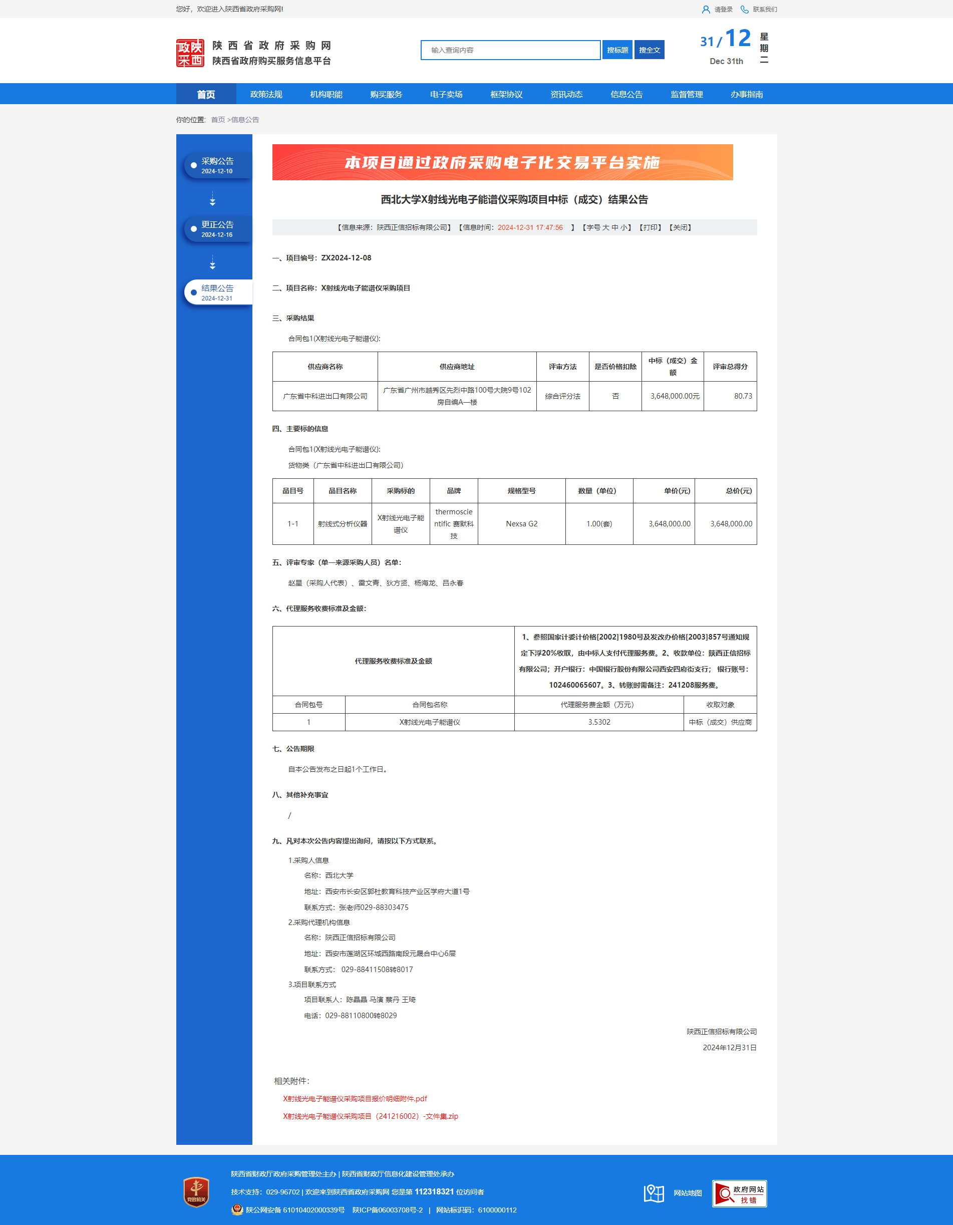 西北大学X射线光电子能谱仪采购项目中标(成交)结果公告