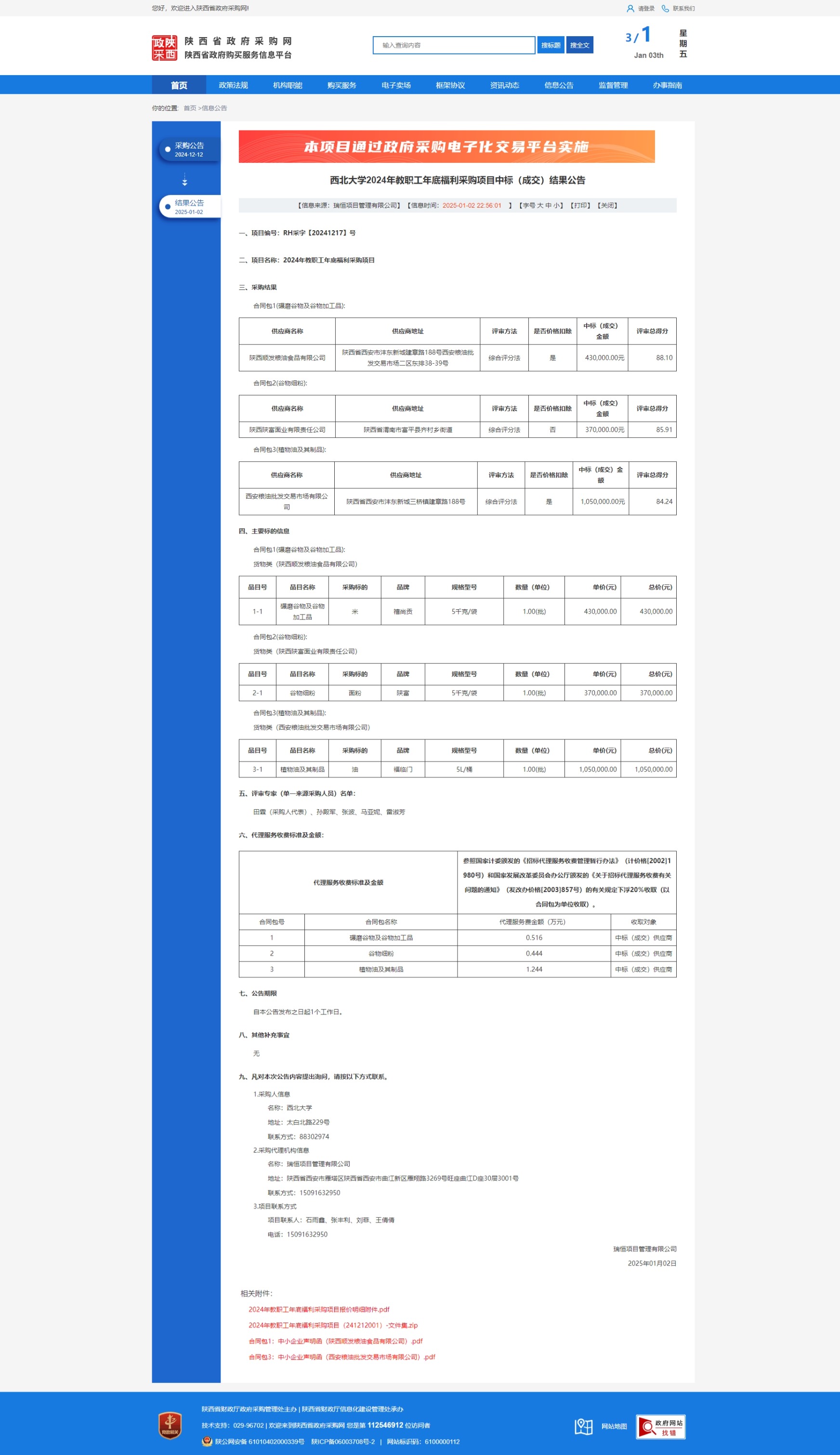 西北大学2024年教职工年底福利采购项目中标(成交)结果公告
