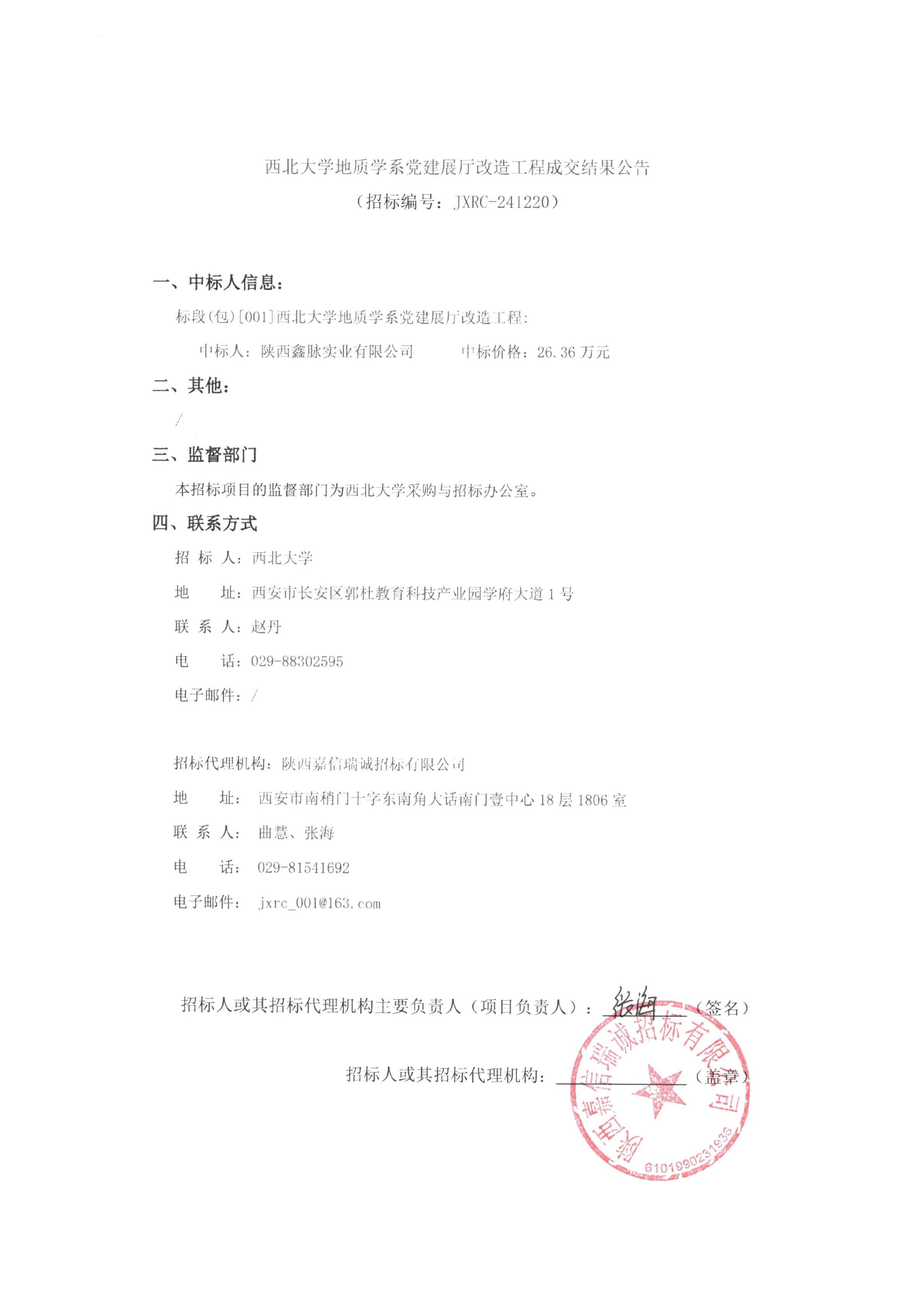 西北大学地质学系党建展厅改造工程成交结果公告