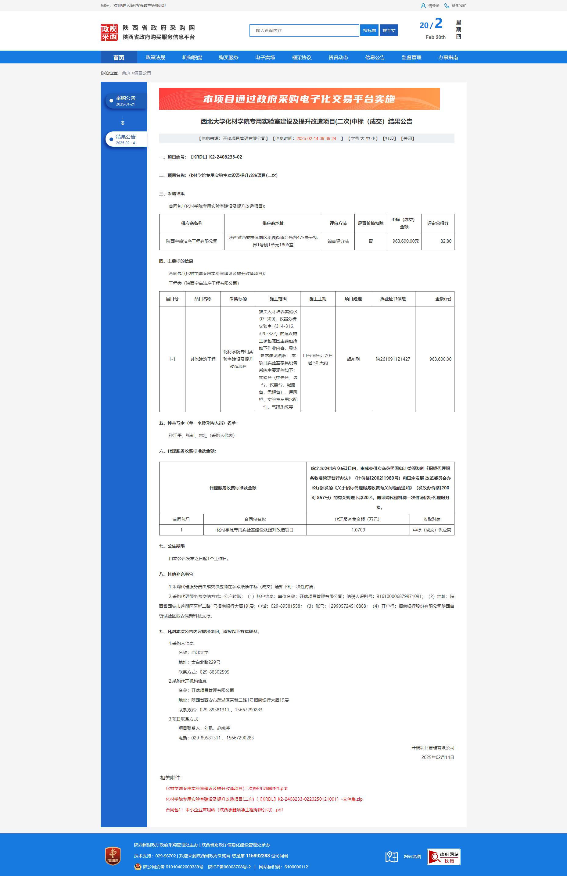 西北大学化材学院专用实验室建设及提升改造项目(二次)中标(成交)结果公告