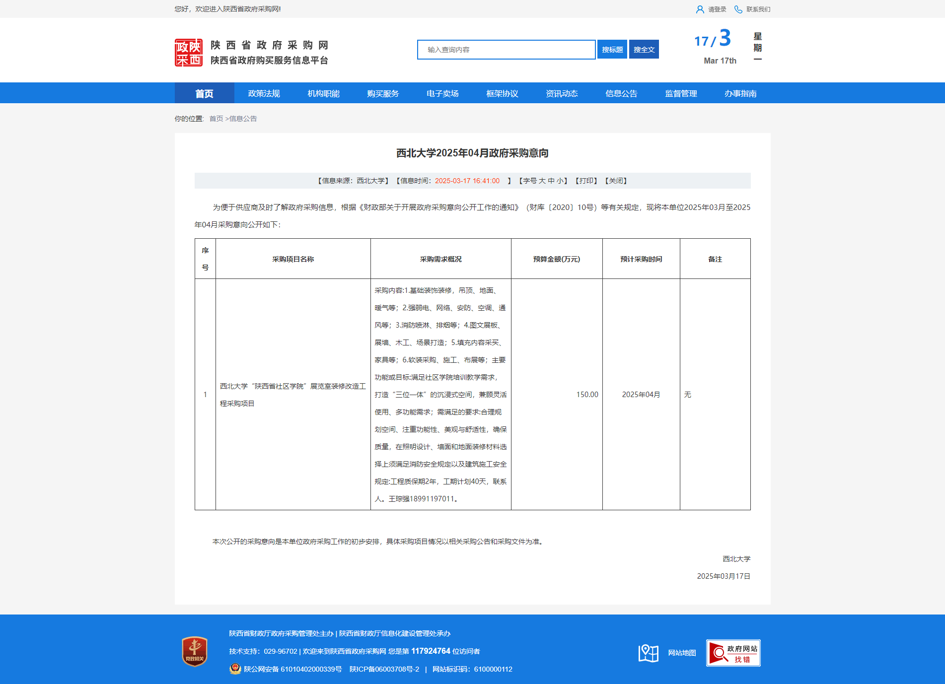 西北大学2025年04月政府采购意向