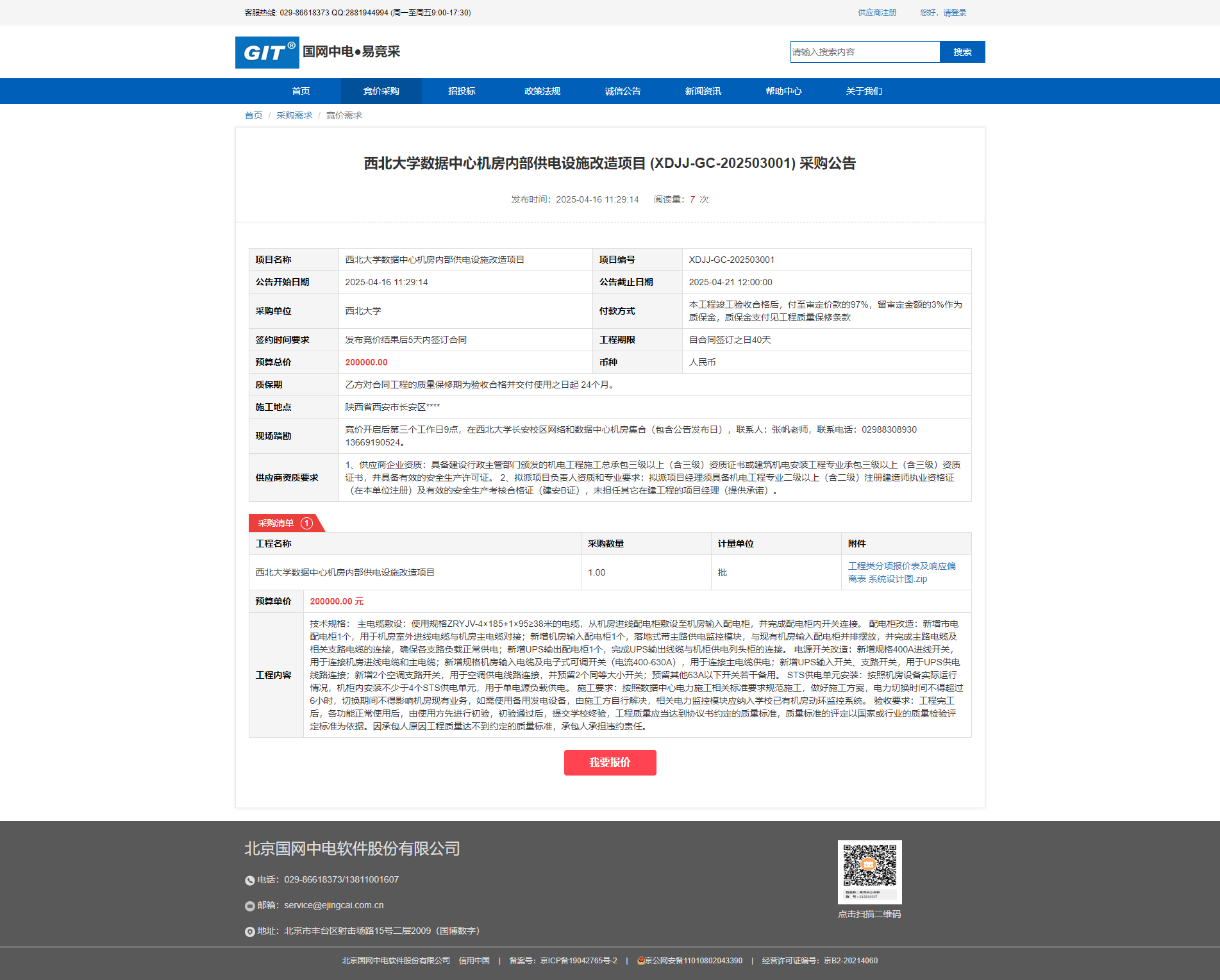 西北大学数据中心机房内部供电设施改造项目采购公告