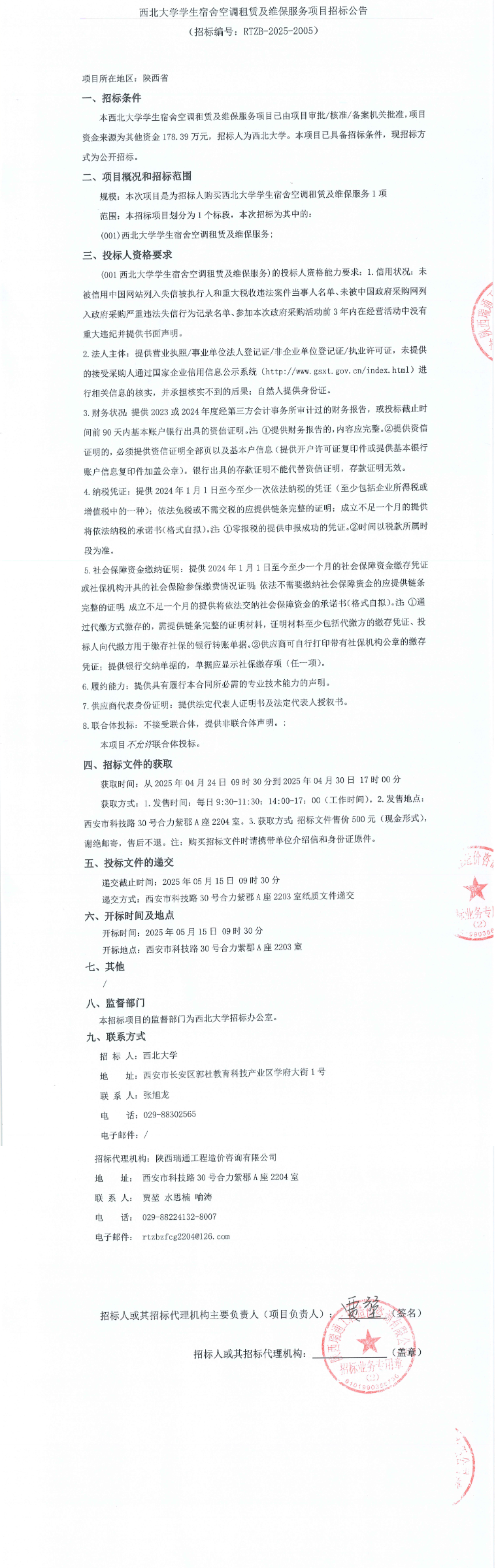 西北大学学生宿舍空调租赁及维保服务项目招标公告