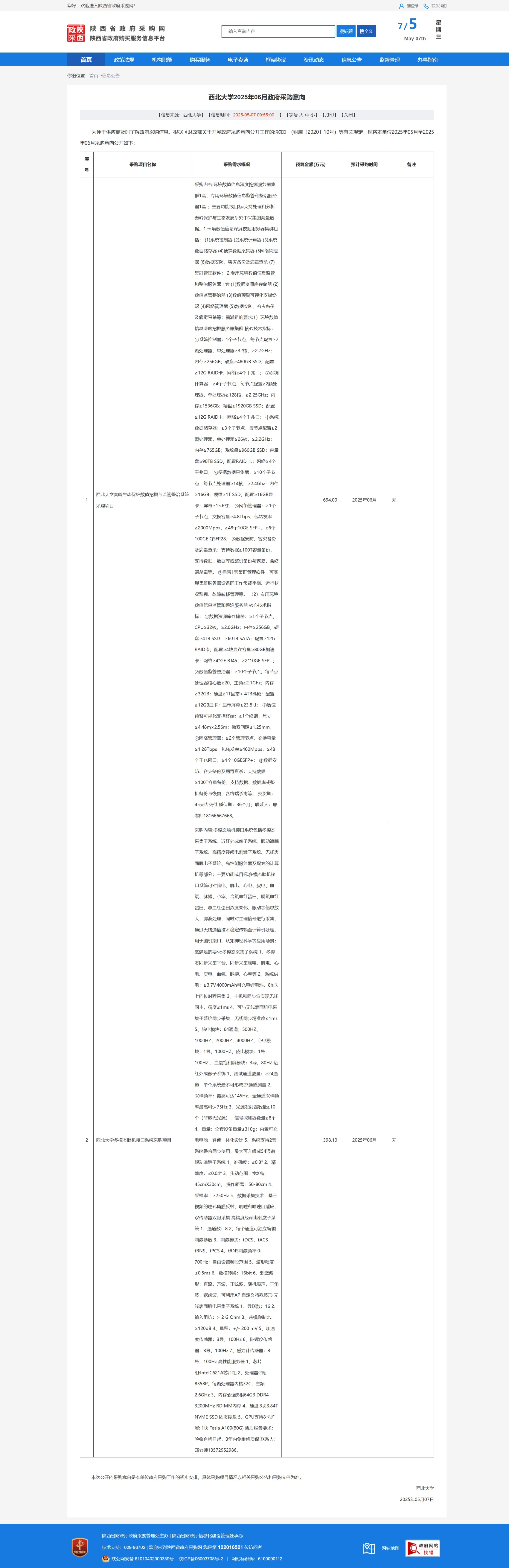 原公告链接:https://www.ccgp-shaanxi.gov.cn/freecms/site/shaanxi/ggxx/info/2025/8a69c7b69656b6a8019684c2861e2a70.html?noticeType=59&noticeId=2d11d827-2ae8-11f0-8063-08c0eb20c666