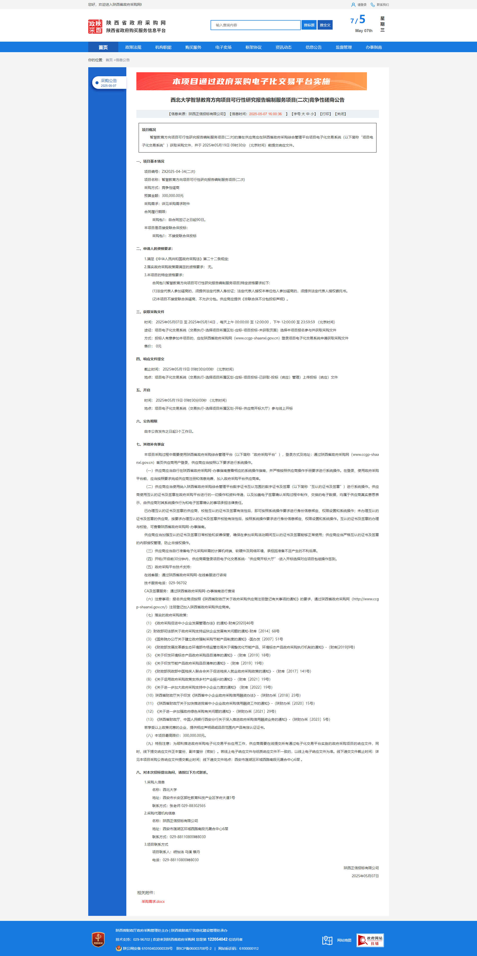西北大学智慧教育方向项目可行性研究报告编制服务项目(二次)竞争性磋商公告