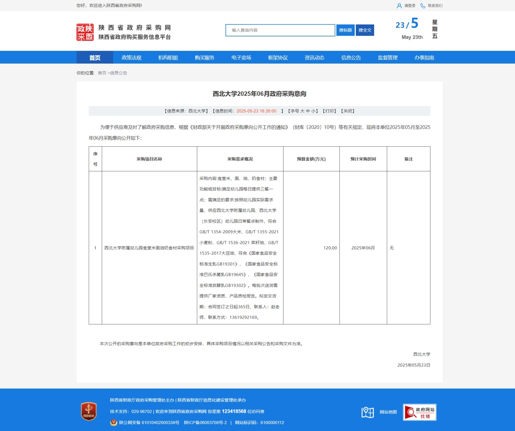 西北大学2025年06月政府采购意向 作者: 编辑:采购与招标办公室 时间:2025-05-23 原公告链接:https://www.ccgp-shaanxi.gov.cn/freecms/site/shaanxi/ggxx/info/2025/8a69c0ac96d0dacb0196fc3edc8d3d53.html?noticeType=59¬iceId=7a700226-37b1-11f0-8063-08c0eb20c666