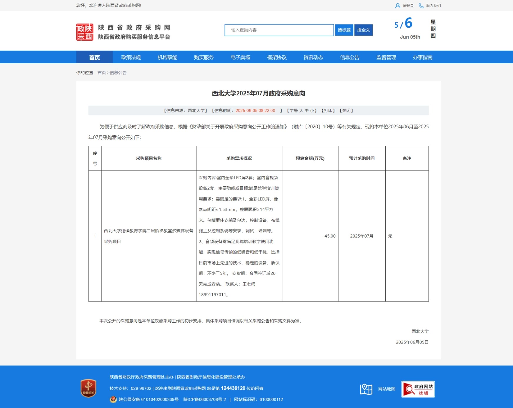 原公告链接:https://www.ccgp-shaanxi.gov.cn/freecms/site/shaanxi/ggxx/info/2025/8a69c8d196ce440a01973d667fcf58b5.html?noticeType=59&noticeId=0a572344-41a5-11f0-8063-08c0eb20c666