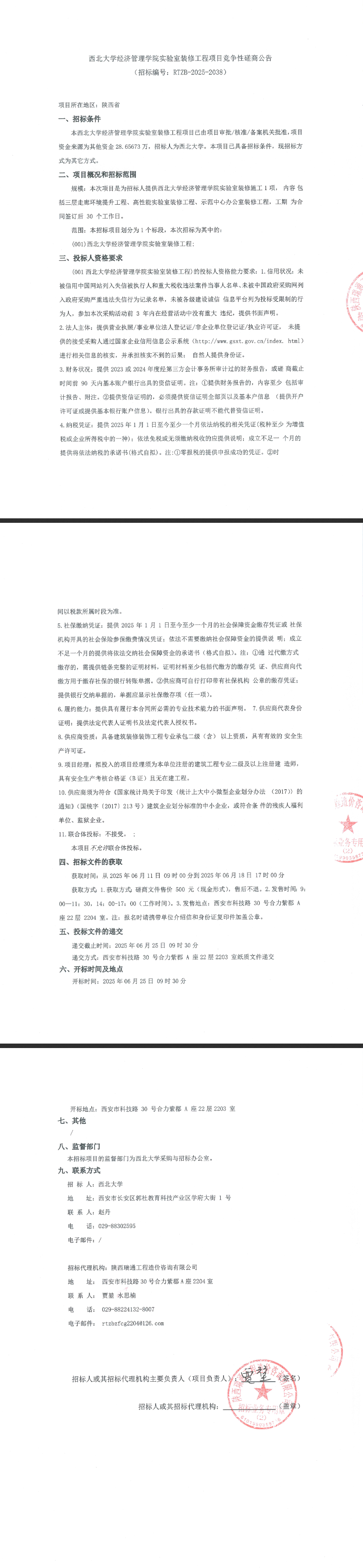 西北大学经济管理学院实验室装修工程项目竞争性磋商公告