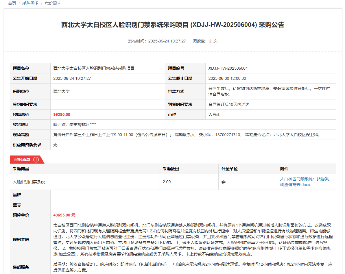 西北大学太白校区教室座椅购置项目竞争性磋商公告
