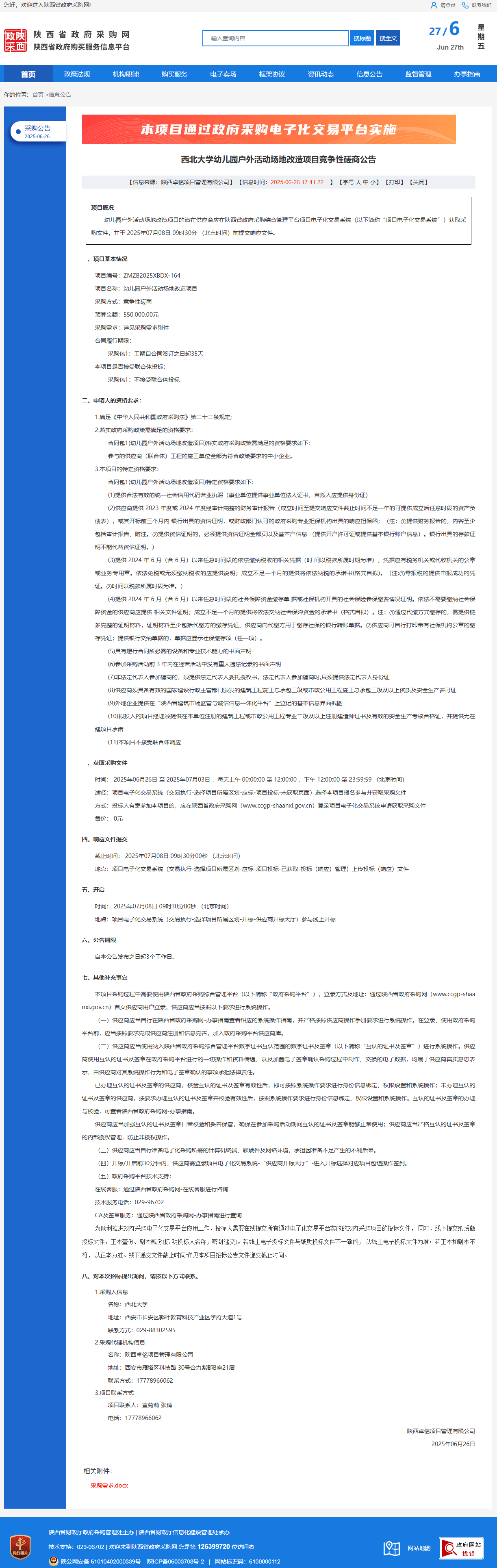 西北大学幼儿园户外活动场地改造项目竞争性磋商公告