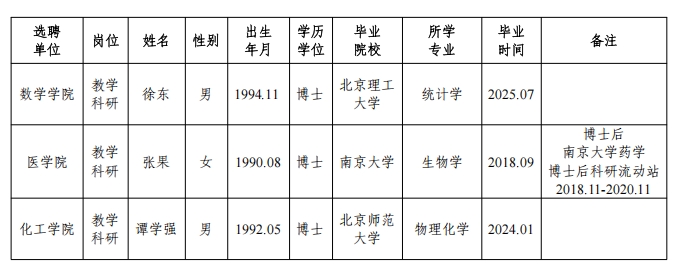 经资格审查,用人单位考查,学校专家评审会审议,我校拟确定下列人员来校工作,聘任方式为参编选聘。本着公平、公正、公开的原则,现将本次拟选聘人员基本情况公示如下: